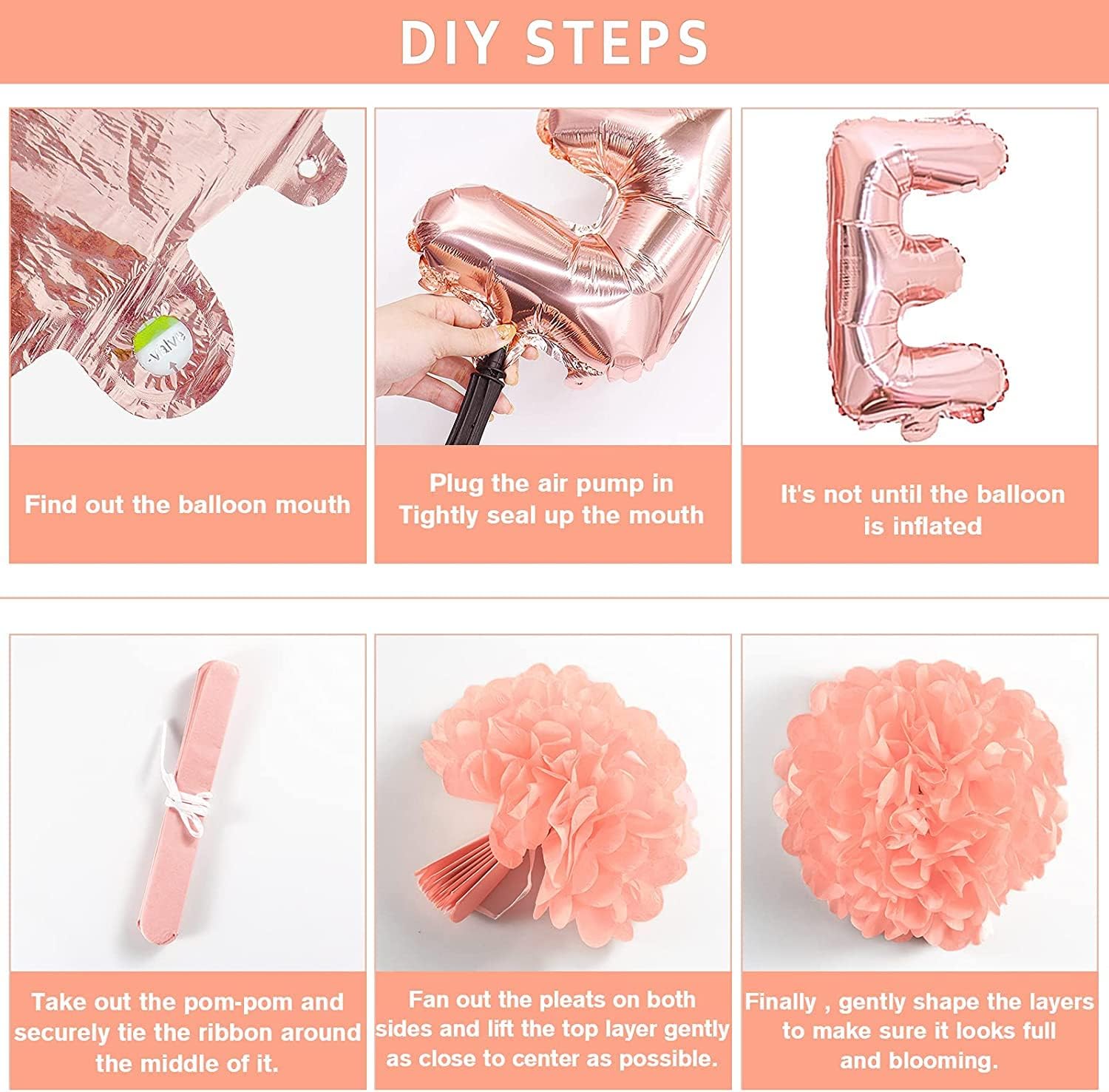 - Easy to Assemble:Rose gold bachelorette party decor set is easy to set up that something is pre-strung.Glittering rose gold banners, paper tassels with a nice and elegant hanging feeling, and paper flower balls in 3 colors, great to create a special atmosphere for your party.