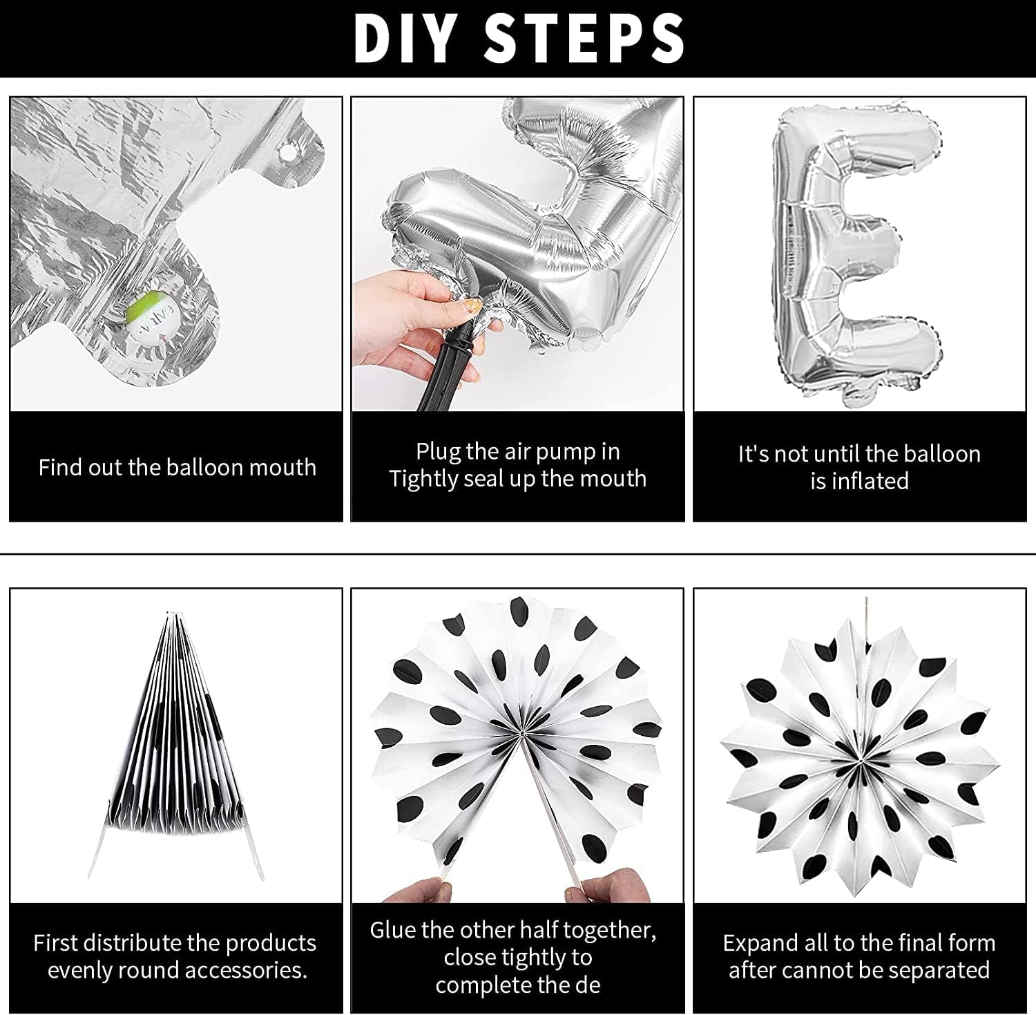 - Included Components : Banner, Balloons, Swirls, Paper Fans, Silver Ribbon, Foil Balloon