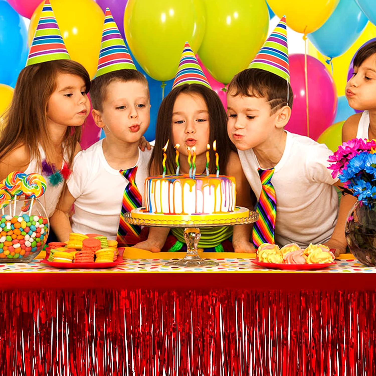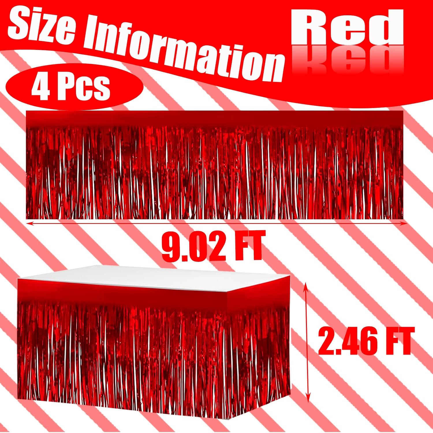 4 Pack 29x108 Inch Metallic Foil Fringe Tinsel Table Skirts for Rectangle Tables Streamer Backdrop for Wedding, Birthday, Parade Floats, Christmas, Halloween Party Decoration(Red)