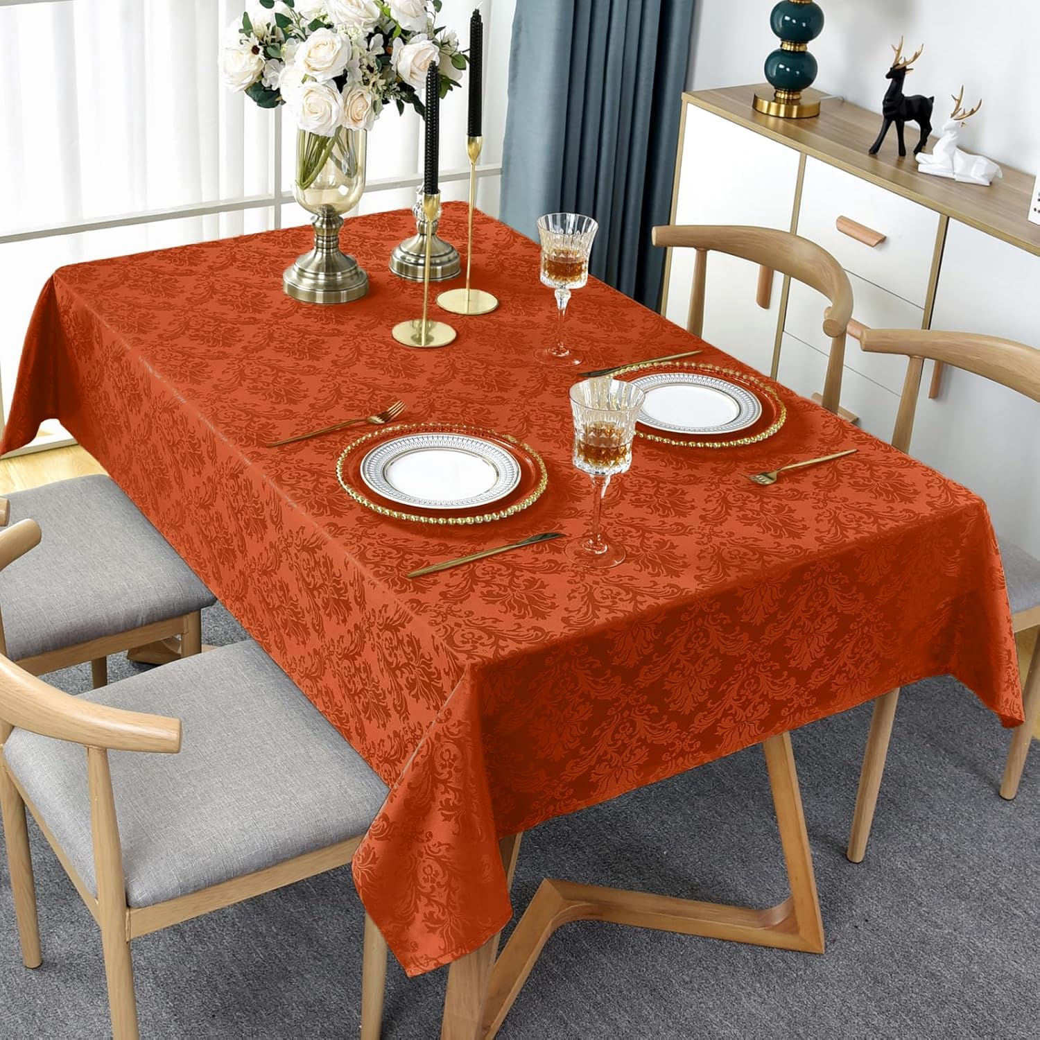 - 【Wrinkle and Spill-proof Material】: This water resistant burnt orange tablecloth is made of 100% premium polyester fabric to ensure the protection of your table and furniture.our rectangle tablecloth smooth, soft, supple, spill-proof and wrinkle resistant, ensuring a crisp and inviting table setting.