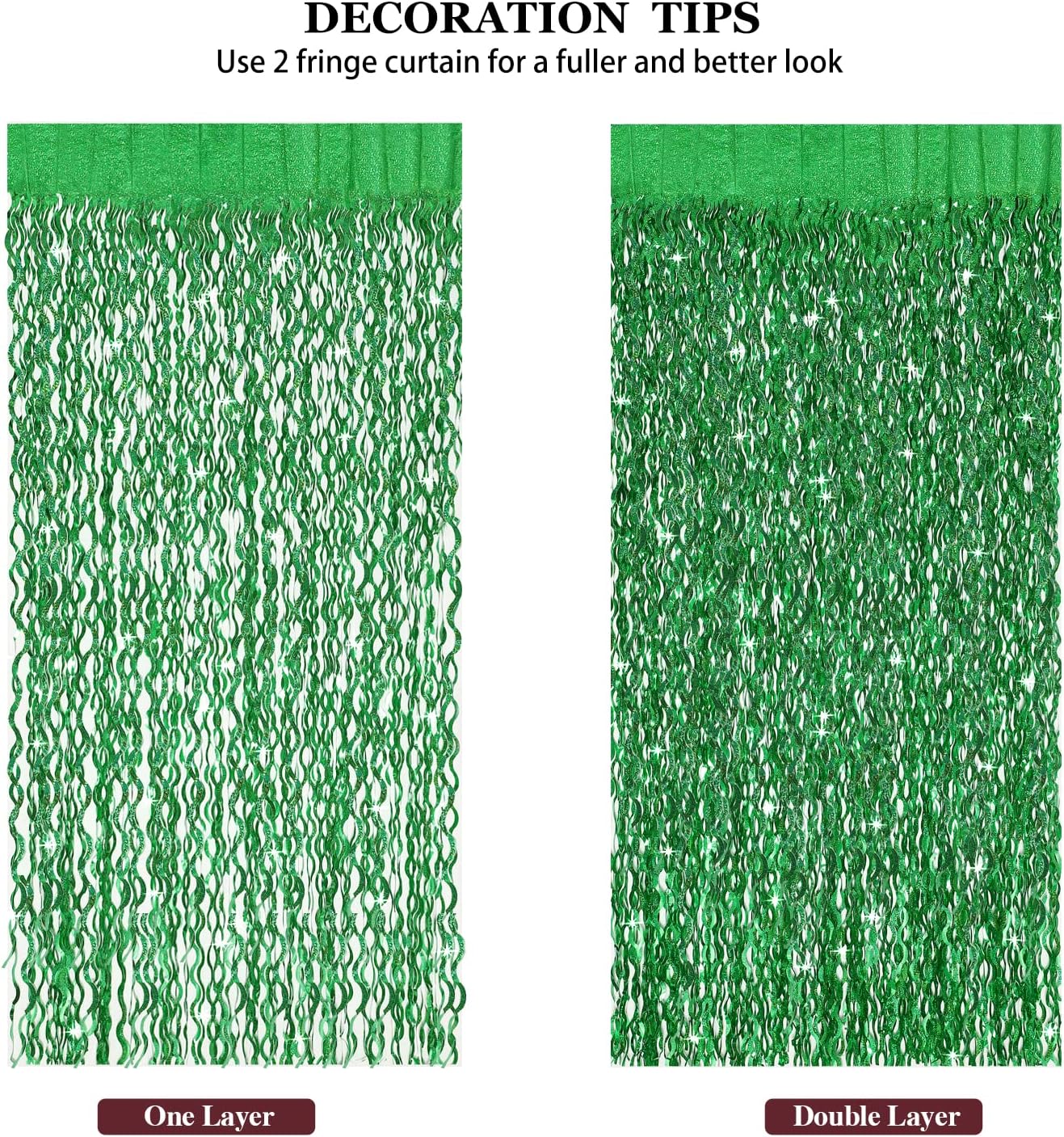 - Packing Included: 3 packs Green tinsel foil fringe curtains party photo backdrop,Each pack curtains size is 3.3ft x 6.6ft, enough length for decorate your party