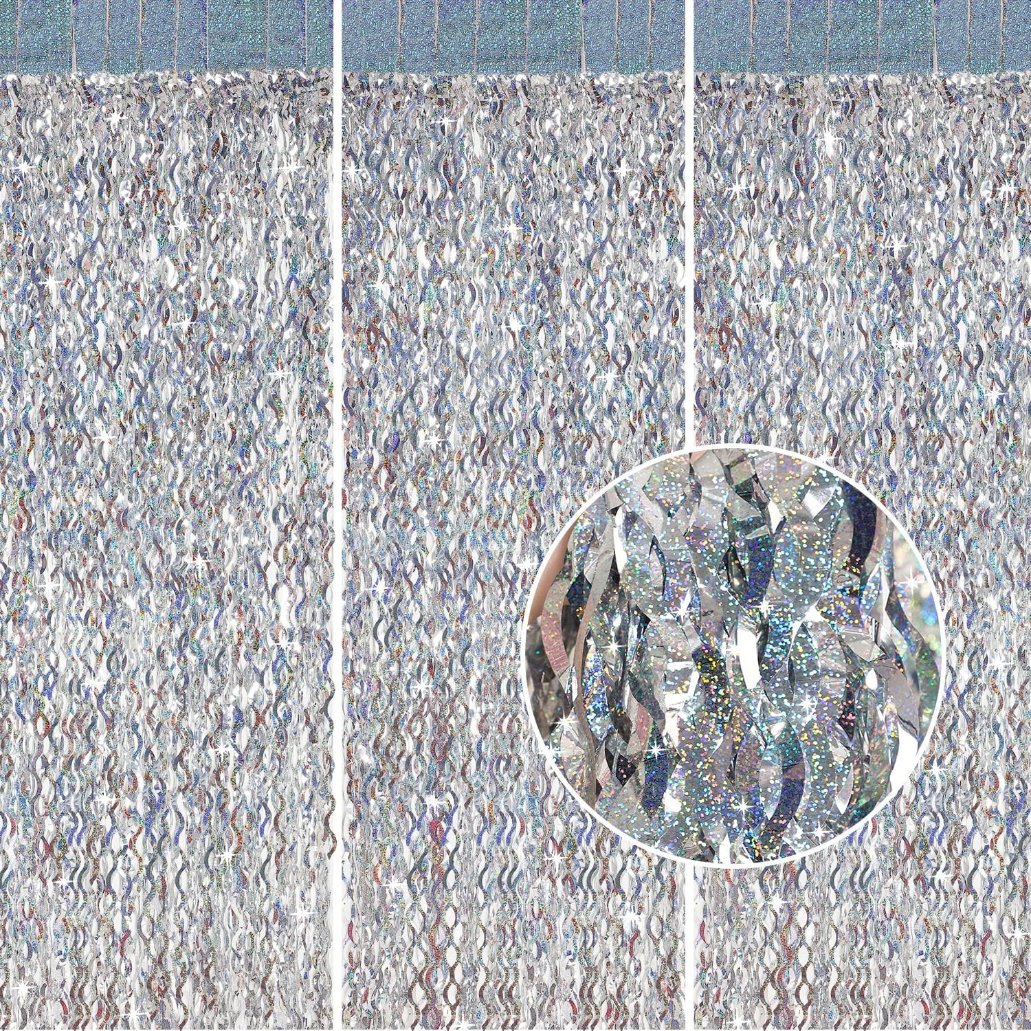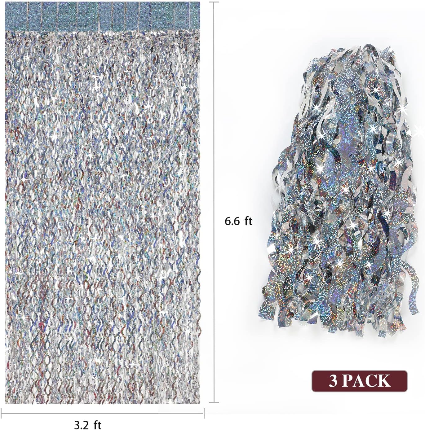 - Packing Included: 3 packs silver tinsel foil fringe curtains party photo backdrop, Each pack curtains size is 3.3ft x 6.6ft, enough length for decorate your party