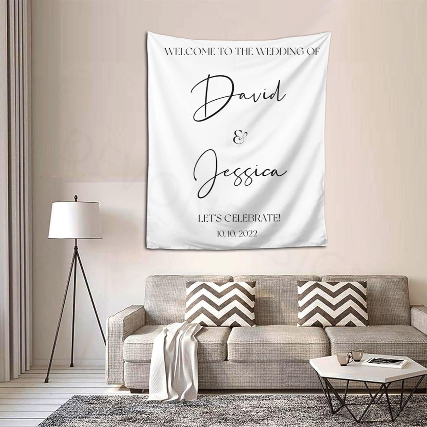 - Add Your Own Design: Customized your own wedding quote banner with your names and your big date. You can change the background and the text's color by yourself. Click 'Customize Now' to start your design, then you will get a unique and beautiful tapestry for your big day! It is the perfect way to capture memories and doubles as a beautiful piece of art for your home for years to come.