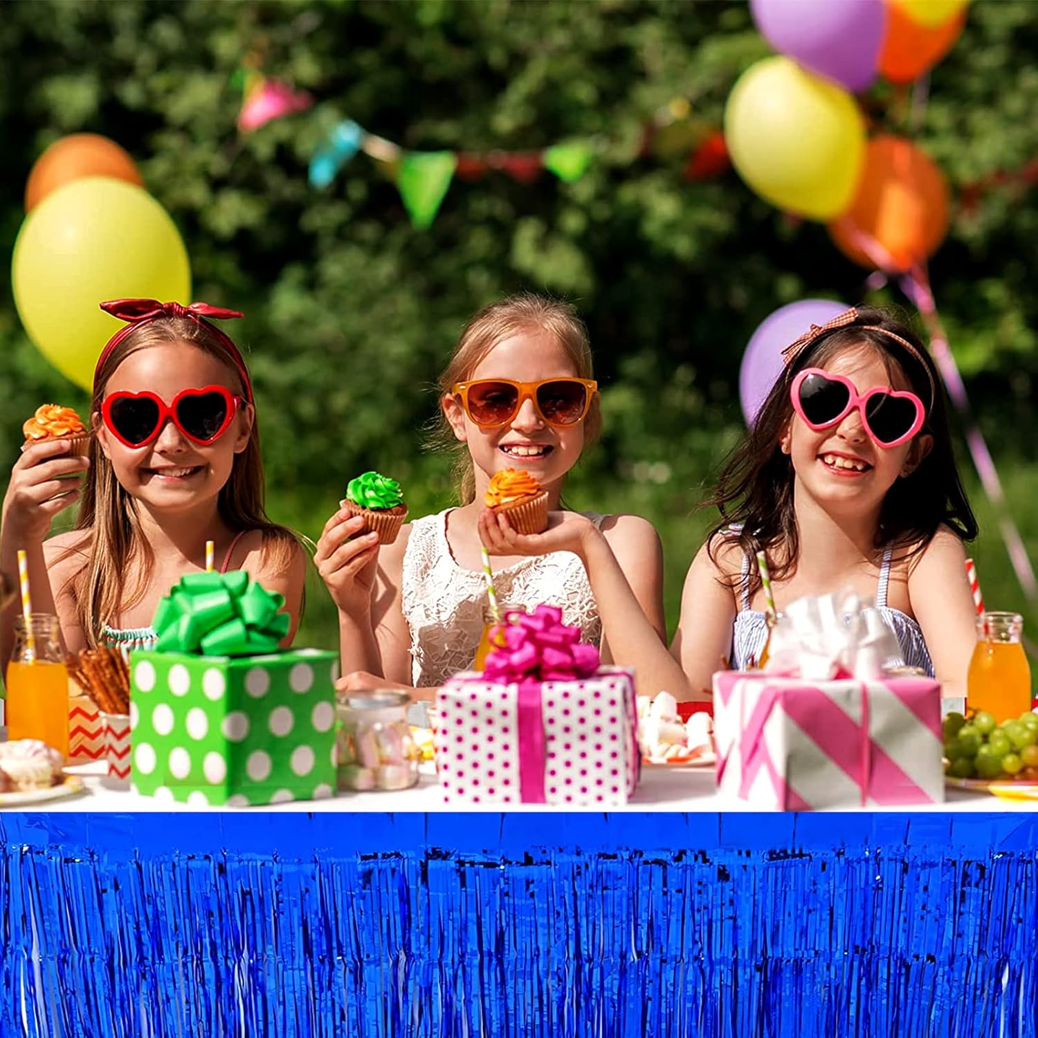 - 【Newest Shiny Foil table skirt】Metallic tassel table skirt are made of aluminum foil with sequins, making the foil table skirt more shiny and beautiful, making the party more complete!