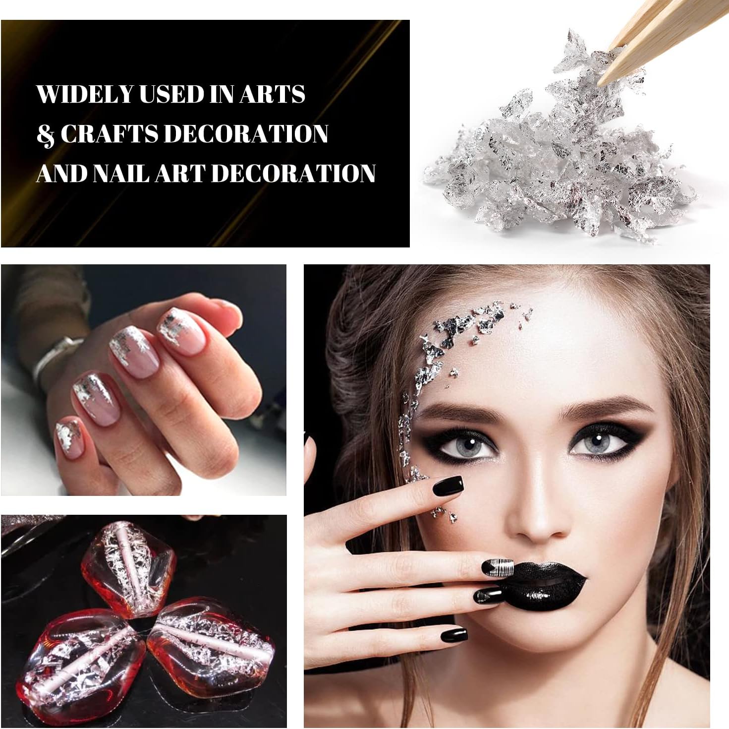- Beauty & Makeup: Silver leaf can be ground into powder and mixed with skin care products and serums. Apply to your face after cleaning to anti-wrinkle. It can also be used for makeup, engaging attention at parties, and performing.