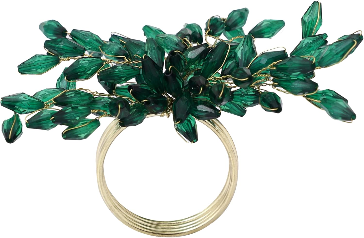 Napkin Rings Set of 6 for Dining Table Decoration Parties Everyday Metal Napkin Holder Leaf Dark Green (Pack of 6)