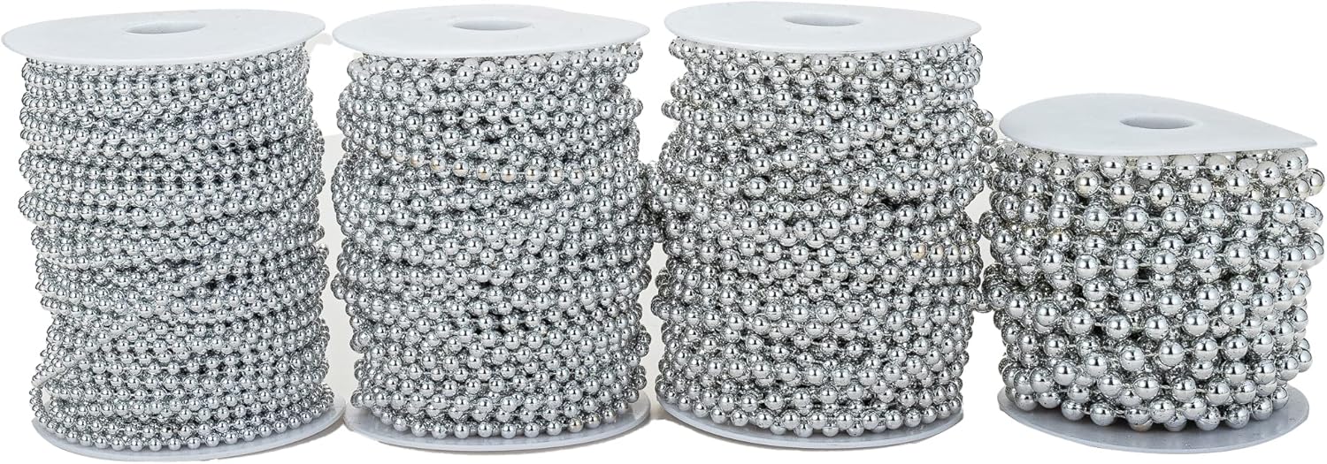 8mm Crafts Faux Pearl Beads Garland Pearl Bead Roll Strand of Pearls to Decorate Floral Centerpieces Wedding Party Favor Christmas Tree(33 Feet Silver)
