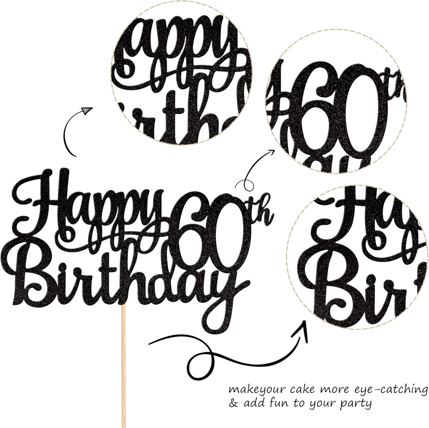 - Wide Usages ! The cake topper is perfect for happy 60th birthday theme party, cheers to 60 years birthday theme party cake decorations, they can make your cake more attractive and bring the fun to your party.You can also apply them for ice cream, fruits, cookies and other desserts.