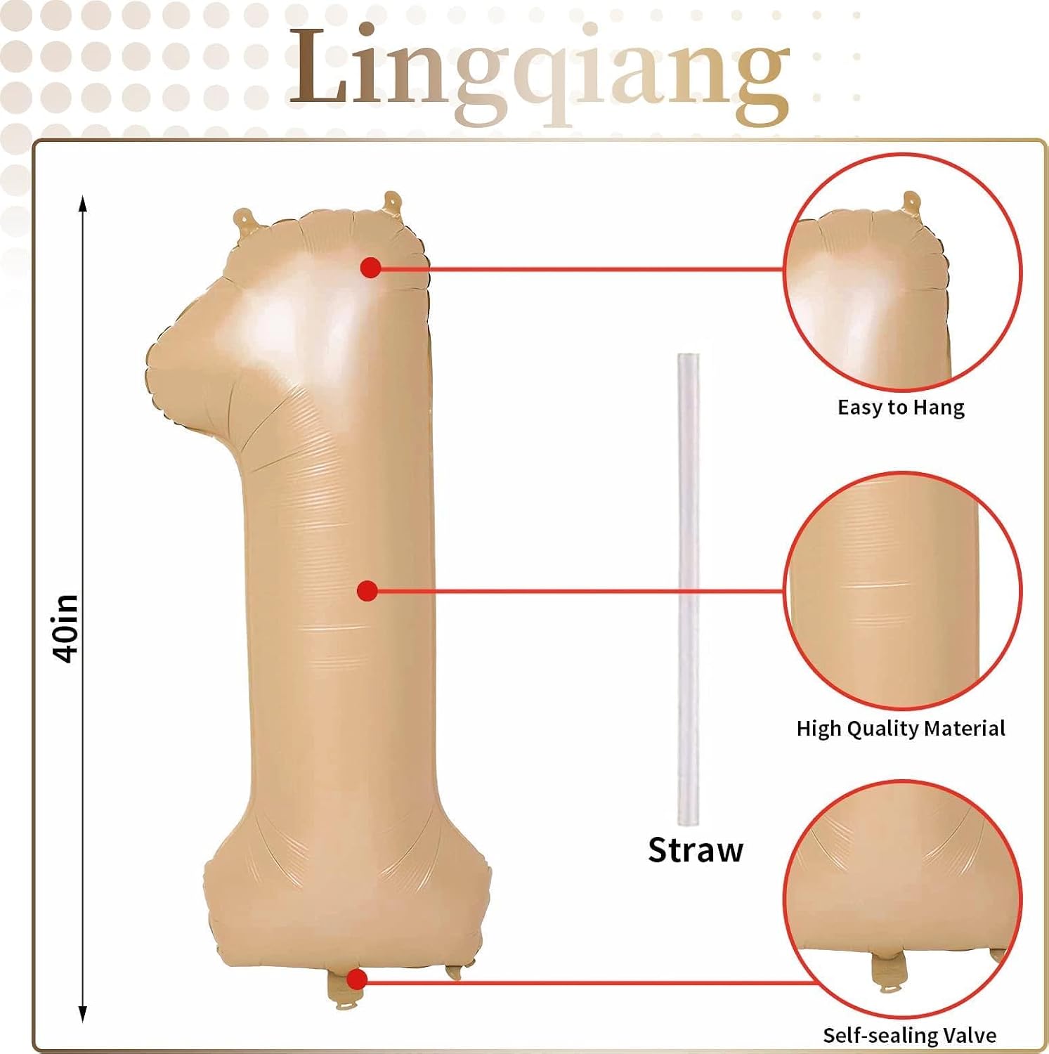 - š Easy to Inflate š - The big light brown number 1 foil balloons have self-sealing valve does not need to be knotted for easy inflation and deflation. It can be inflated with air or helium. When filled with helium, the balloons can float in the air; after filling, press the valve of the digital balloon to seal it. It can be reused. Do not throw away after use!