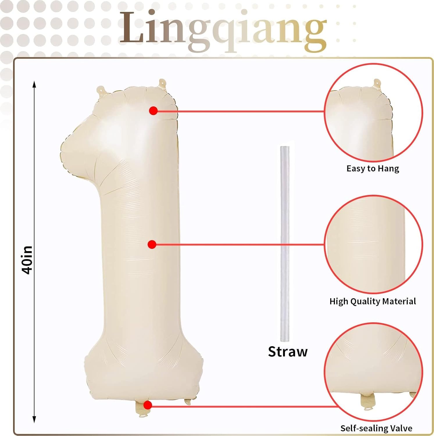 - š Beige Number 1 Balloon š - You will get 1pc 40 inch mylar foil number 1 balloon and 1pc straw. Perfect for 1st 10th 12th 13th 15th 16th 17th 18th 21st birthday or anniversary party decorations supplies.