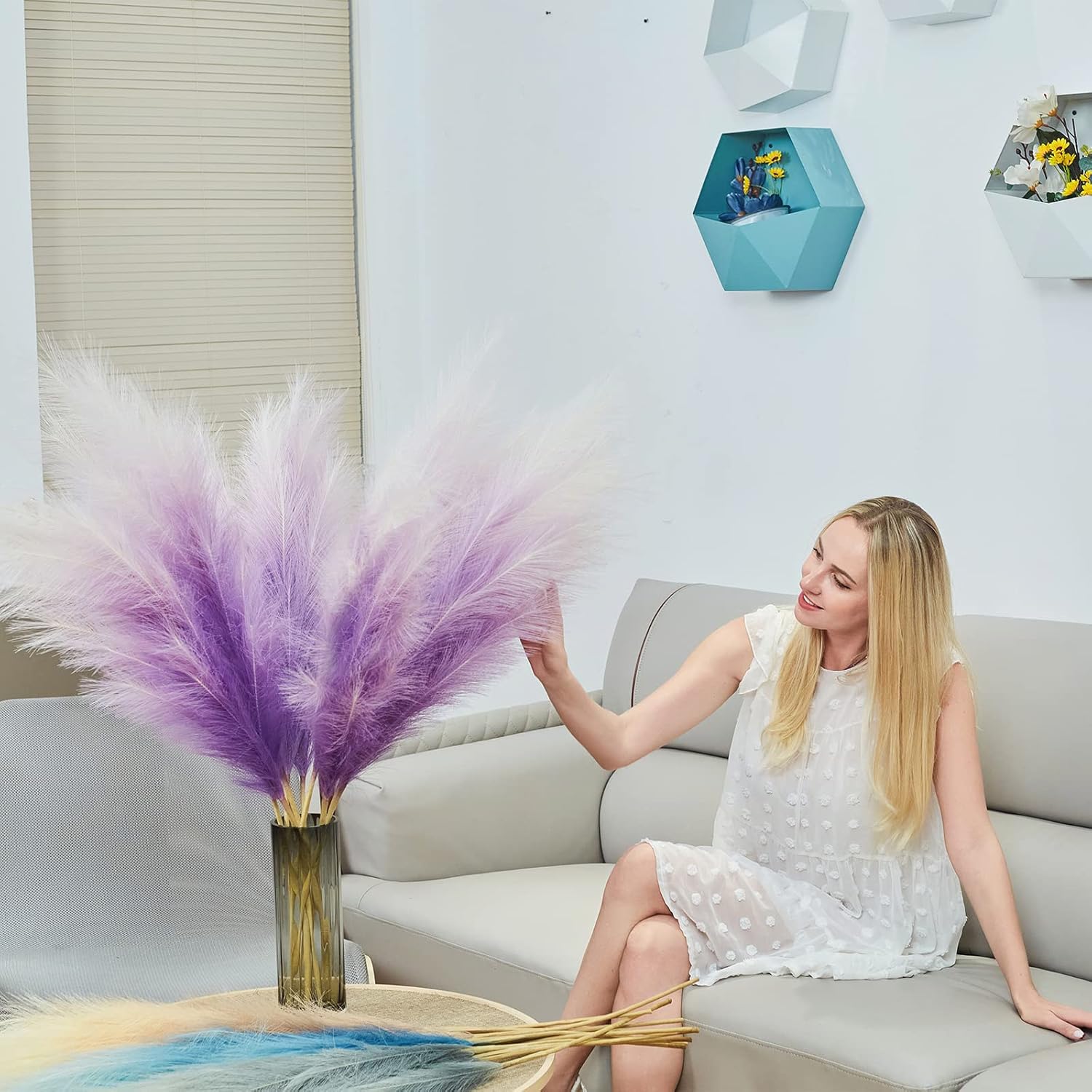 - Minimalistic and Elegant Decor Piece: Really nice faux pampas grass for home decor, display in your hallway, kitchen, living room, bedroom, front room, dining room or entry way... any space.They are also a great addition to wedding, flower arrangements, lifestyle photography, party, bohemian decorate and etc