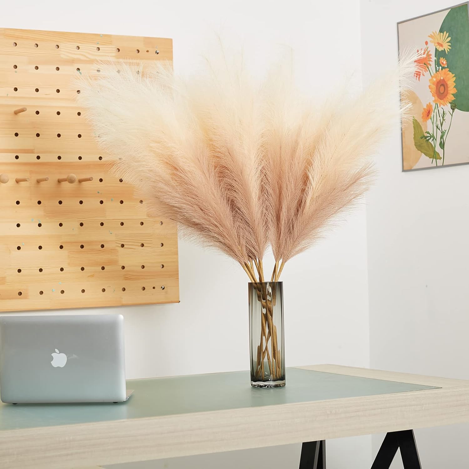 - Warm Color& Good Texture Pompous Grass: It comes with 6 long stems of extra fluffy and tall faux pampas grass They're nice and full and have a really impressive appearance, nicely with a variety of decorations! Packaging with box to avoid crushing during transit, hold their shape very well