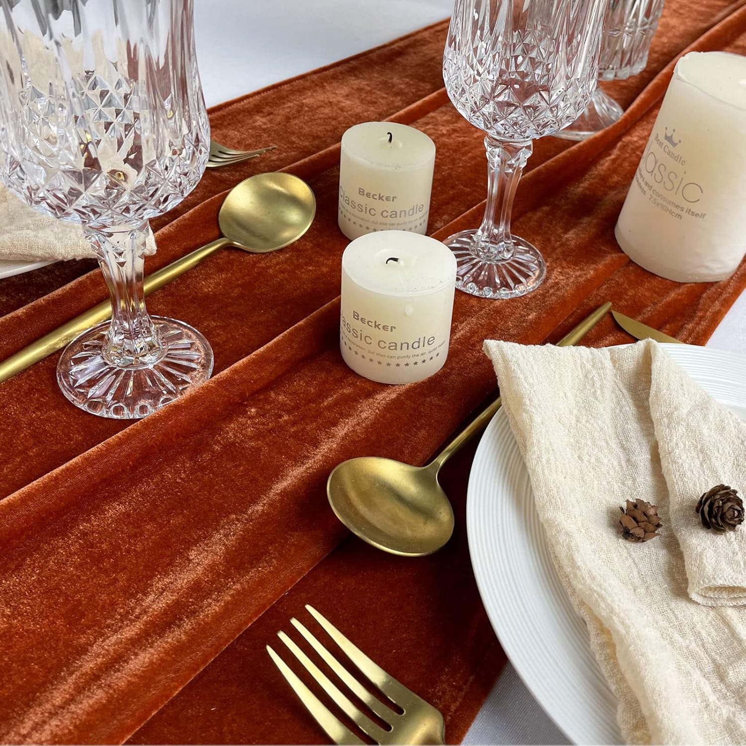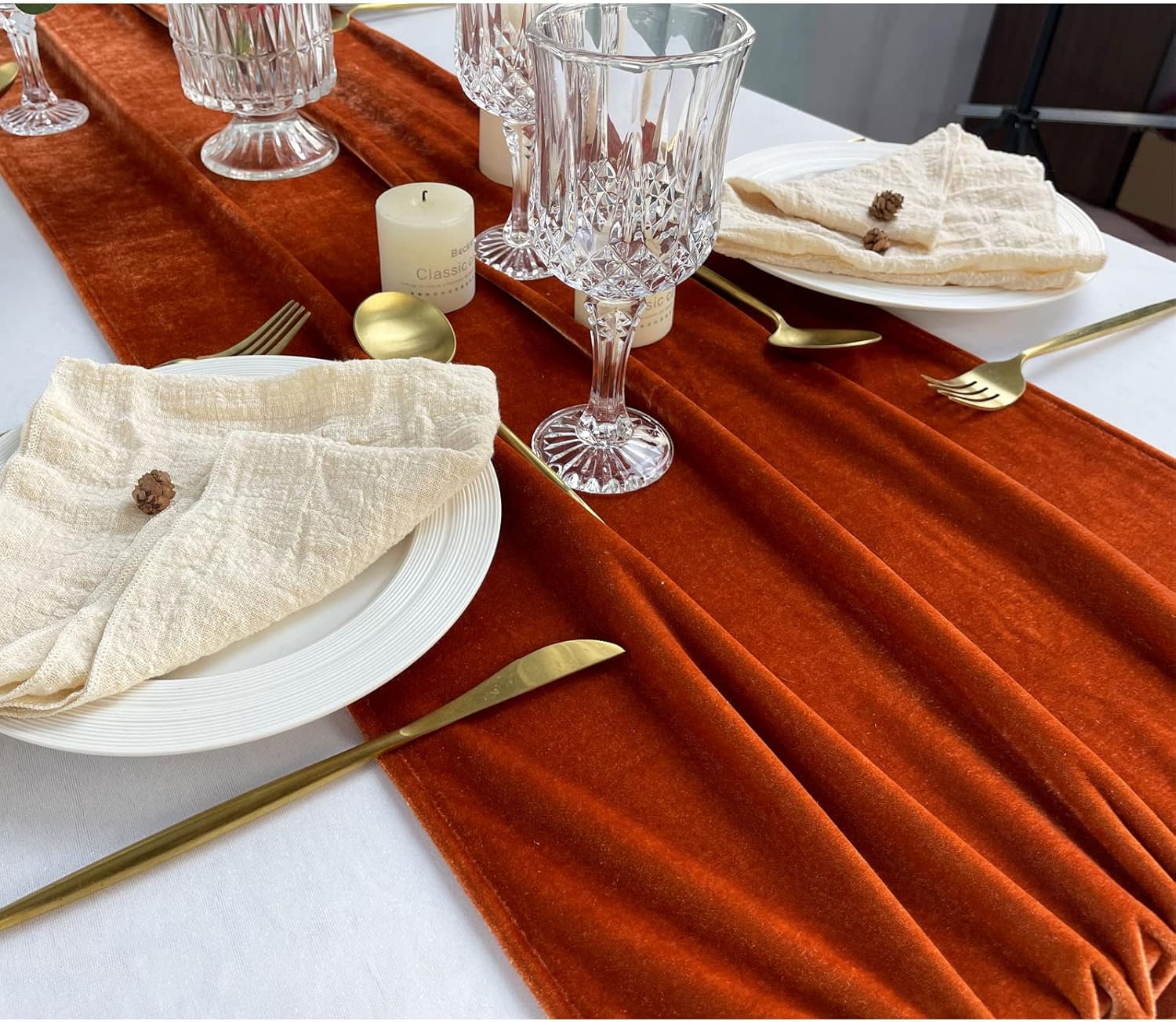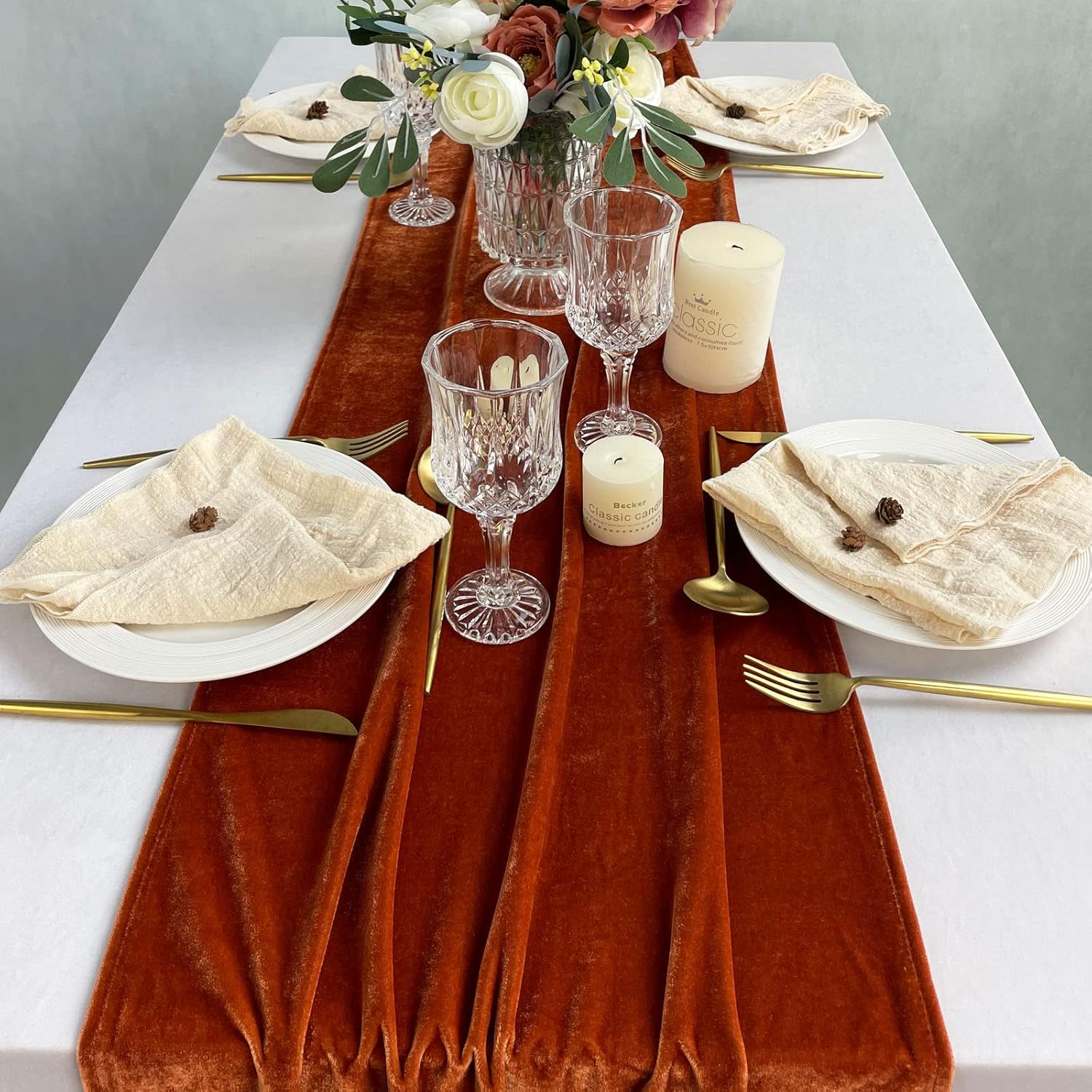 Luxurious Velvet Table Runner, 10ft Wedding Reception Decorations, 20x120inch Soft Velvet Fabric, Table Linen Overlay, Wedding Table Runners (Terracotta, 20X120inch)