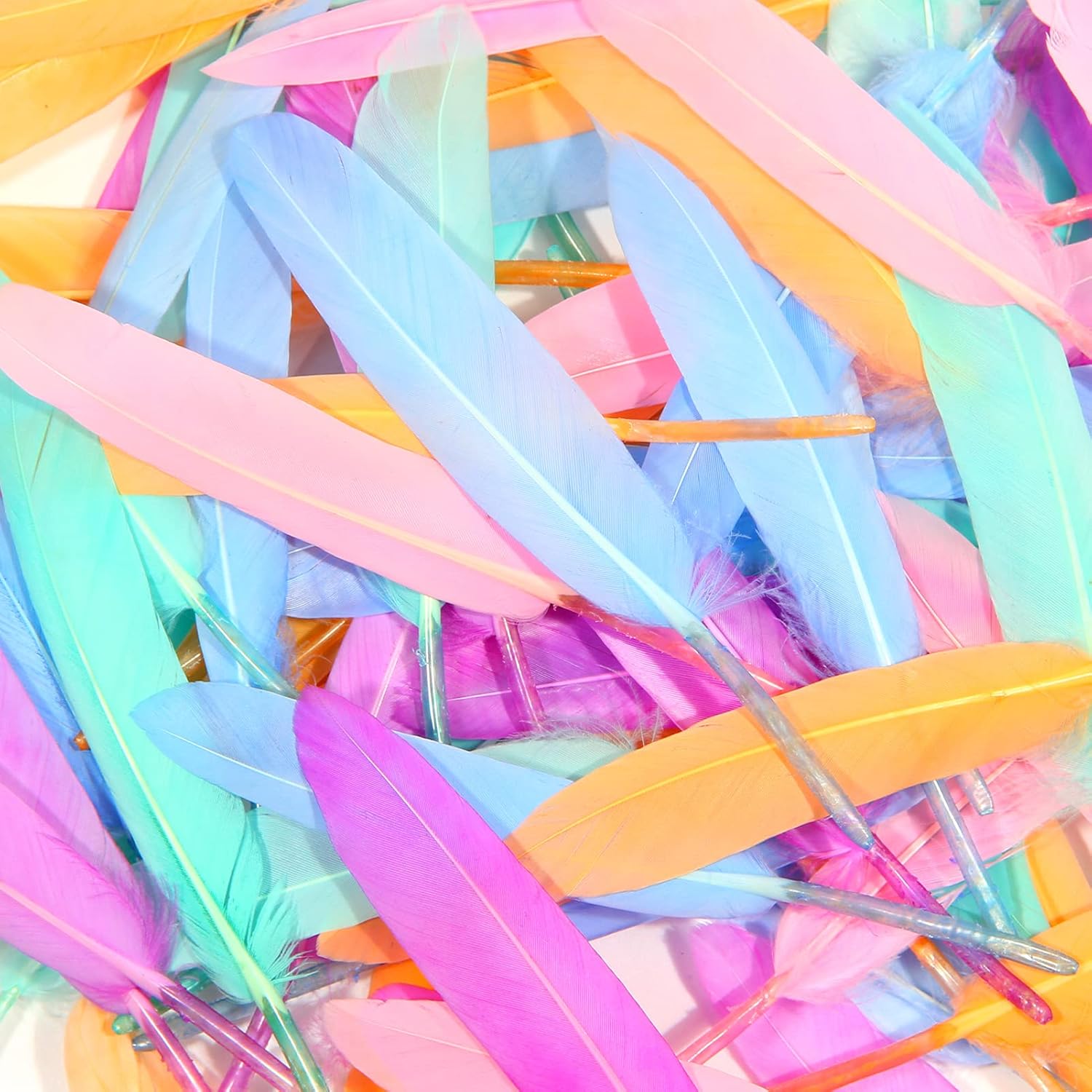 FeelfunFeather 120pcs Macaron Goose Cochettes Feather 4-6 inch 10-15cm Bulk Natural for Wedding Party Halloween Decorations DIY Cosplay Gothic Costumes Crafts