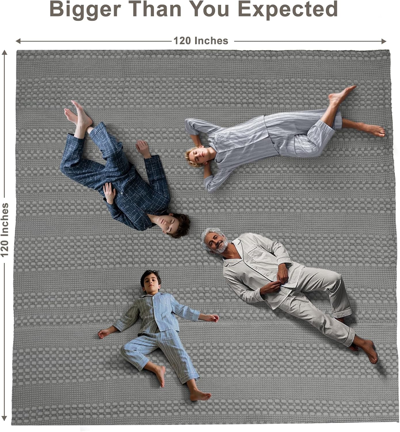PHF 100% Cotton Waffle Blanket Oversized King 120"x120", Lightweight Breathable Extra Large 10'x10' Blankets for Bed, Giant Big Luxury Aesthetic Woven Bedding for Home Decor, Dark Grey