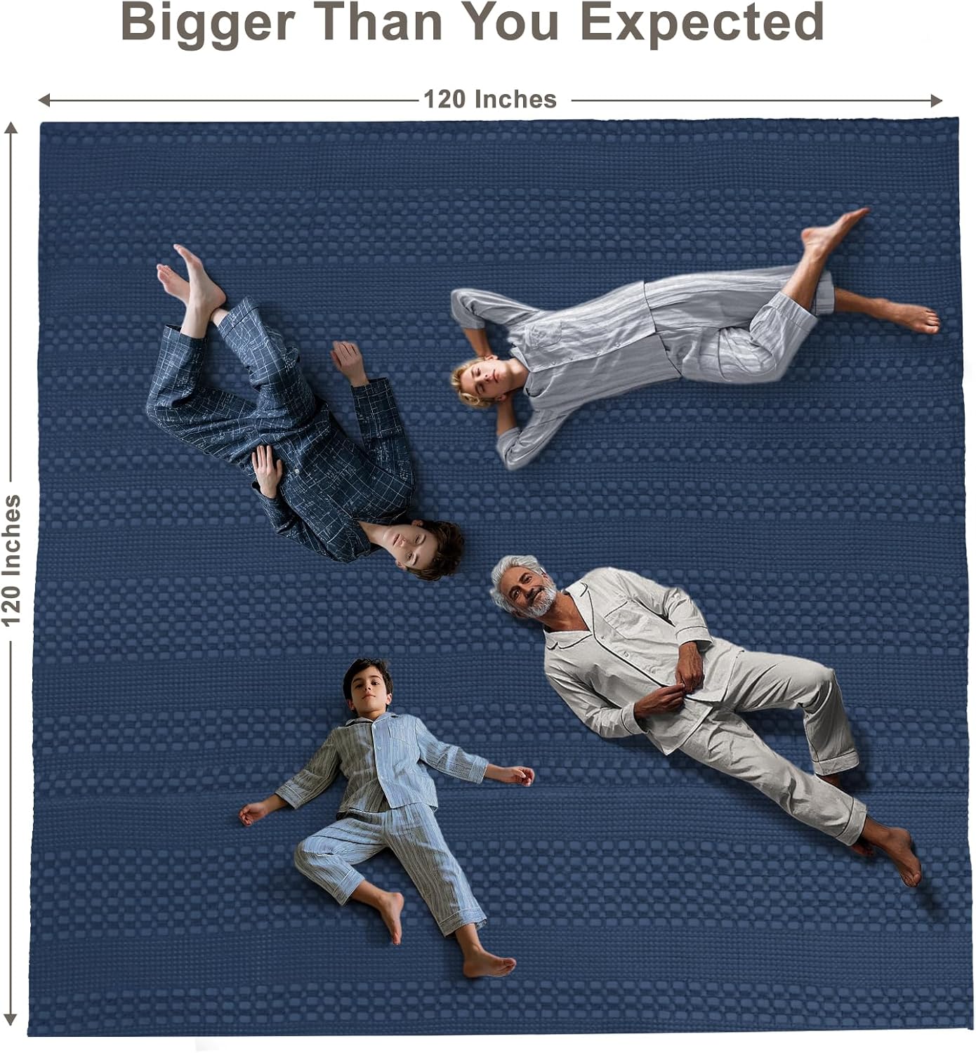 PHF 100% Cotton Waffle Blanket Oversized King 120"x120", Lightweight Breathable Extra Large 10'x10' Blankets for Bed, Giant Big Luxury Aesthetic Woven Bedding for Home Decor, Bright Navy Blue