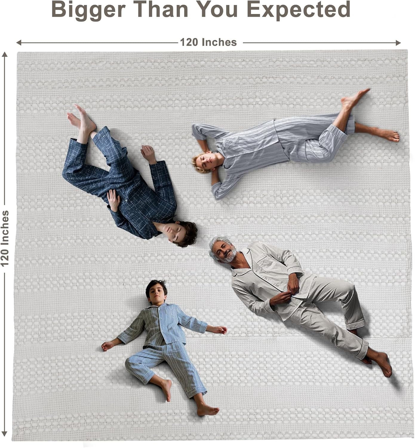 PHF 100% Cotton Waffle Blanket Oversized King 120"x120", Lightweight Breathable Extra Large 10'x10' Blankets for Bed, Giant Big Luxury Aesthetic Woven Bedding for Home Decor, Light Grey
