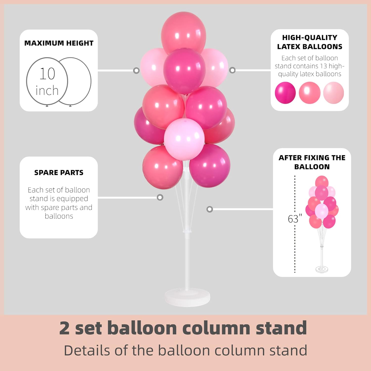 Balloon Column Kit Set of 2 With Balloons Included - Balloon Tower with Stand, Base, and Pole,Backdrop Decoration for Wedding, Baby Shower, Birthday Party, or Bachelorette Parties (Pink)
