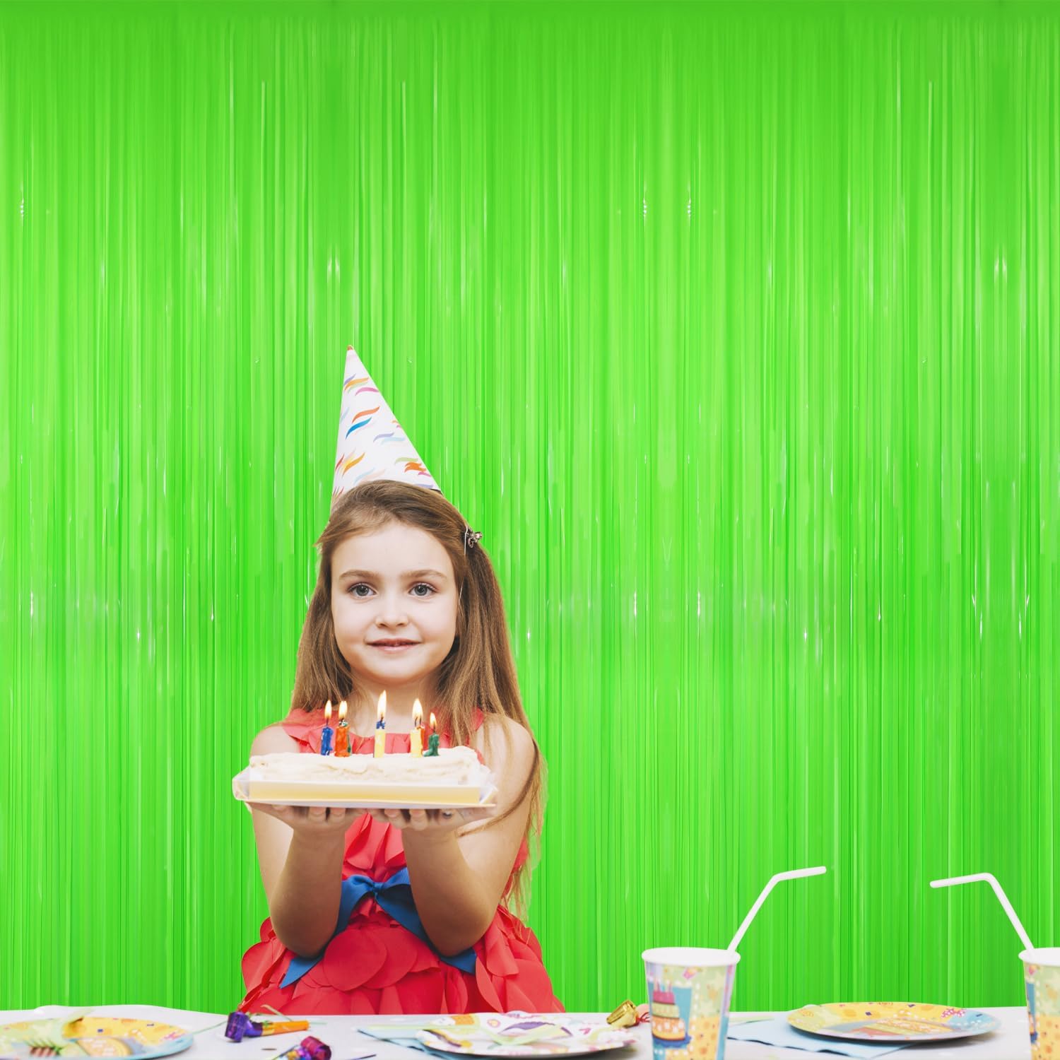 GOER 3.2 ft x 8.2 ft Metallic Tinsel Foil Fringe Curtains Party Photo Backdrop Party Streamers for Birthday,Graduation,New Year Eve Decorations Wedding Decor(1 Pack,Candy Lime Green)
