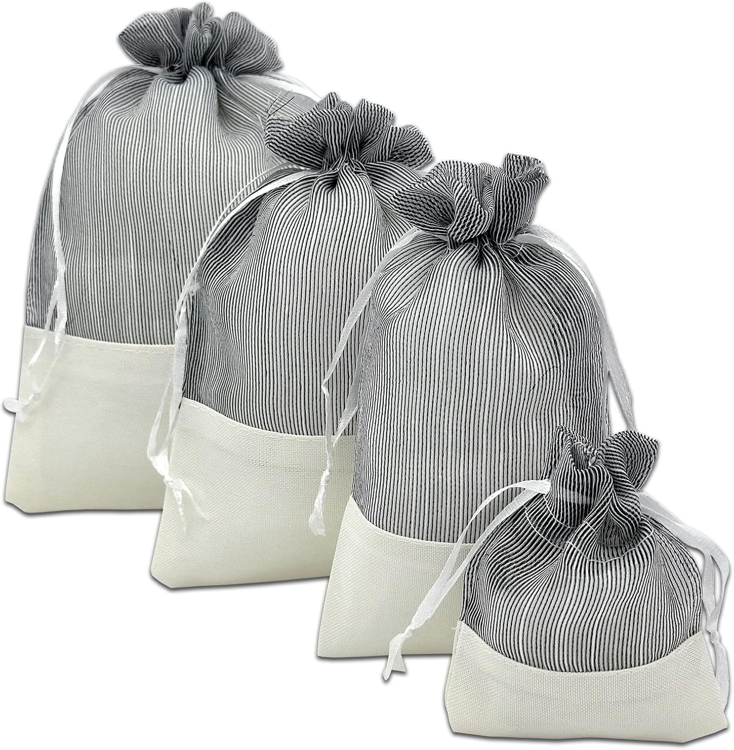 TheDisplayGuys For Your Modern Living 24-Pack Linen & Black Organza Gift Bags with Drawstrings (Small 4 x 6) - Party Favors, Samples, Treats Mesh Pouches