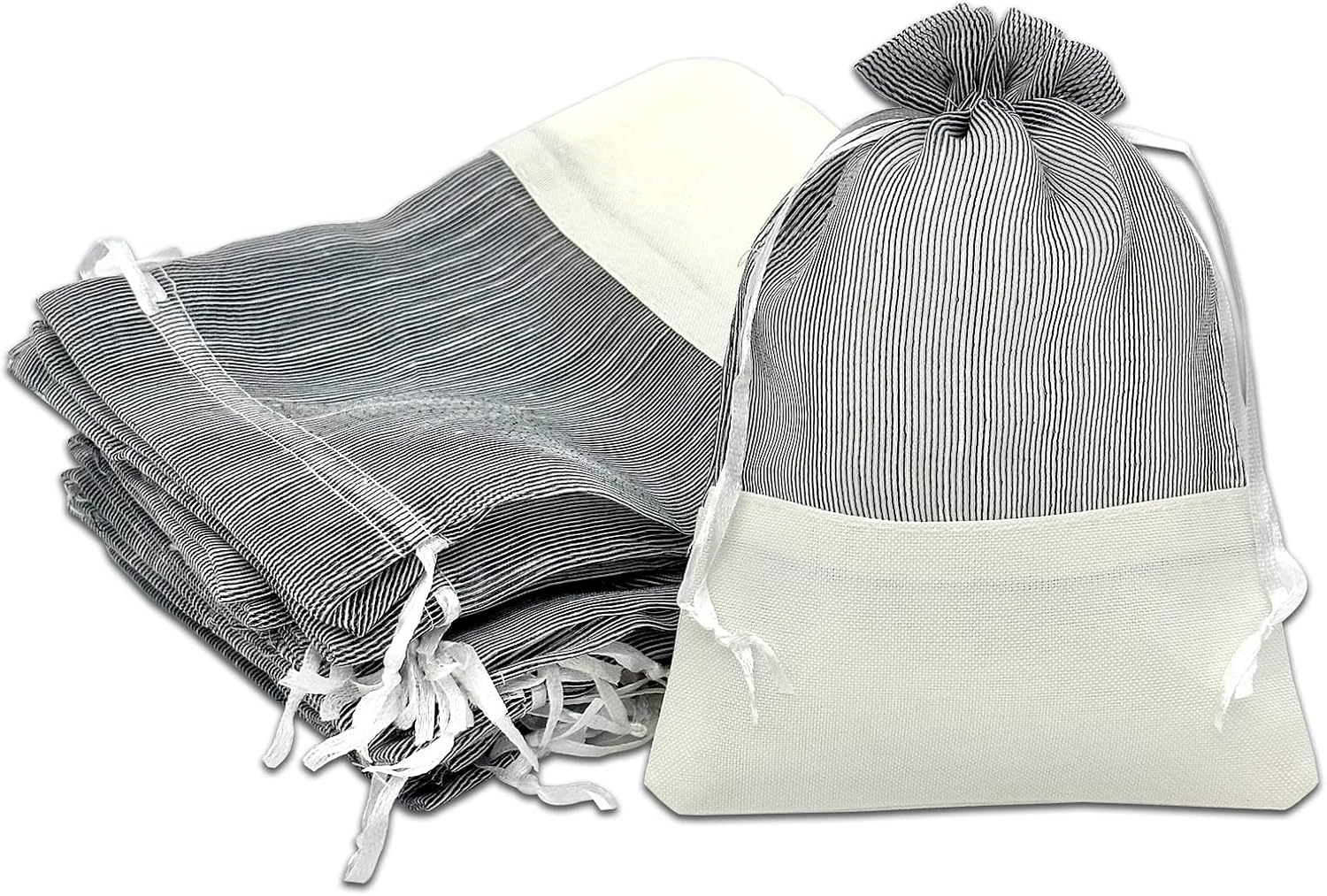 TheDisplayGuys For Your Modern Living 24-Pack Linen & Black Organza Gift Bags with Drawstrings (Medium 5 x 7 1/4) - Party Favors, Samples, Treats Mesh Pouches