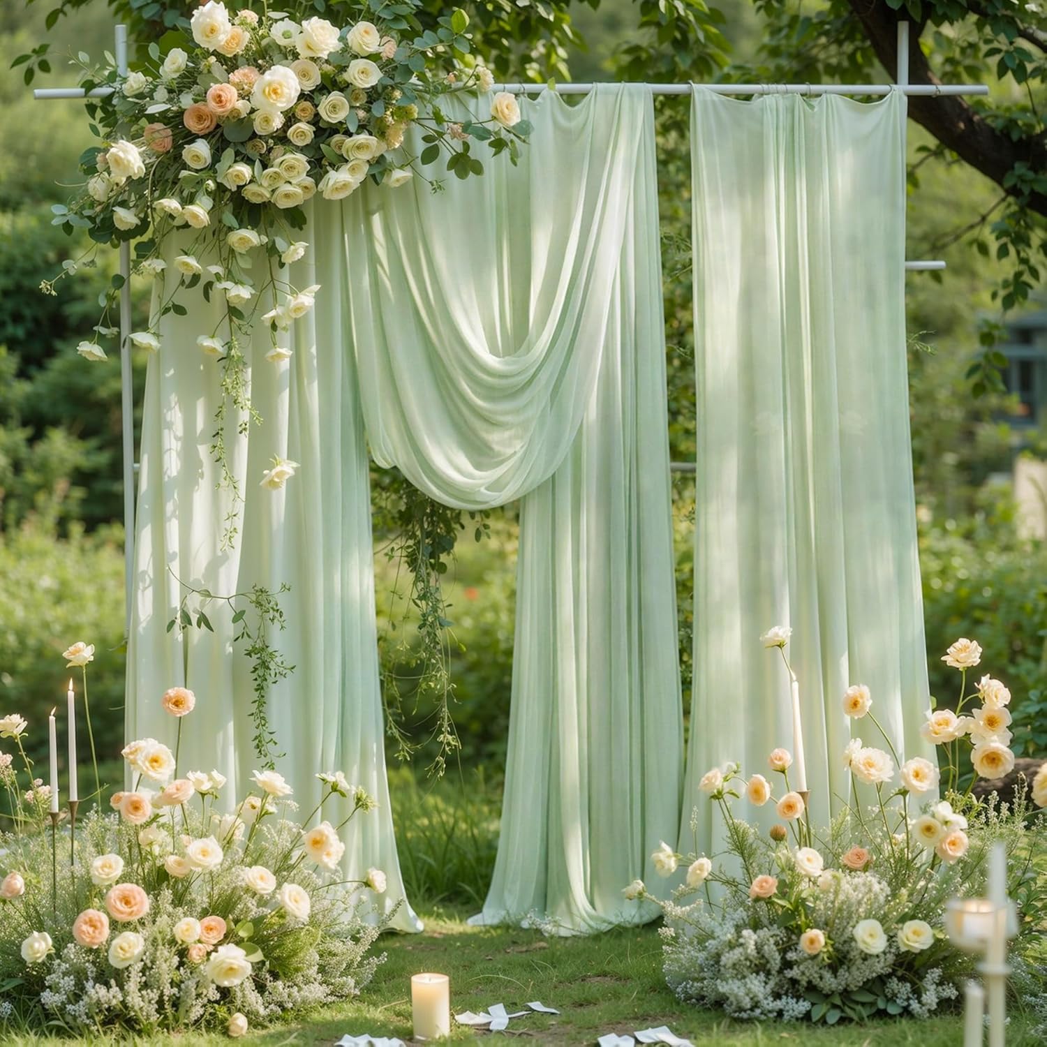 - What You Get: Including 1 panel sage green chiffon wedding arch fabric, each panel is 29" wide by 6 Yards (216 inches) long. Voile sheer chiffon draping fabric are good choice to decorate your wedding arch arbor.