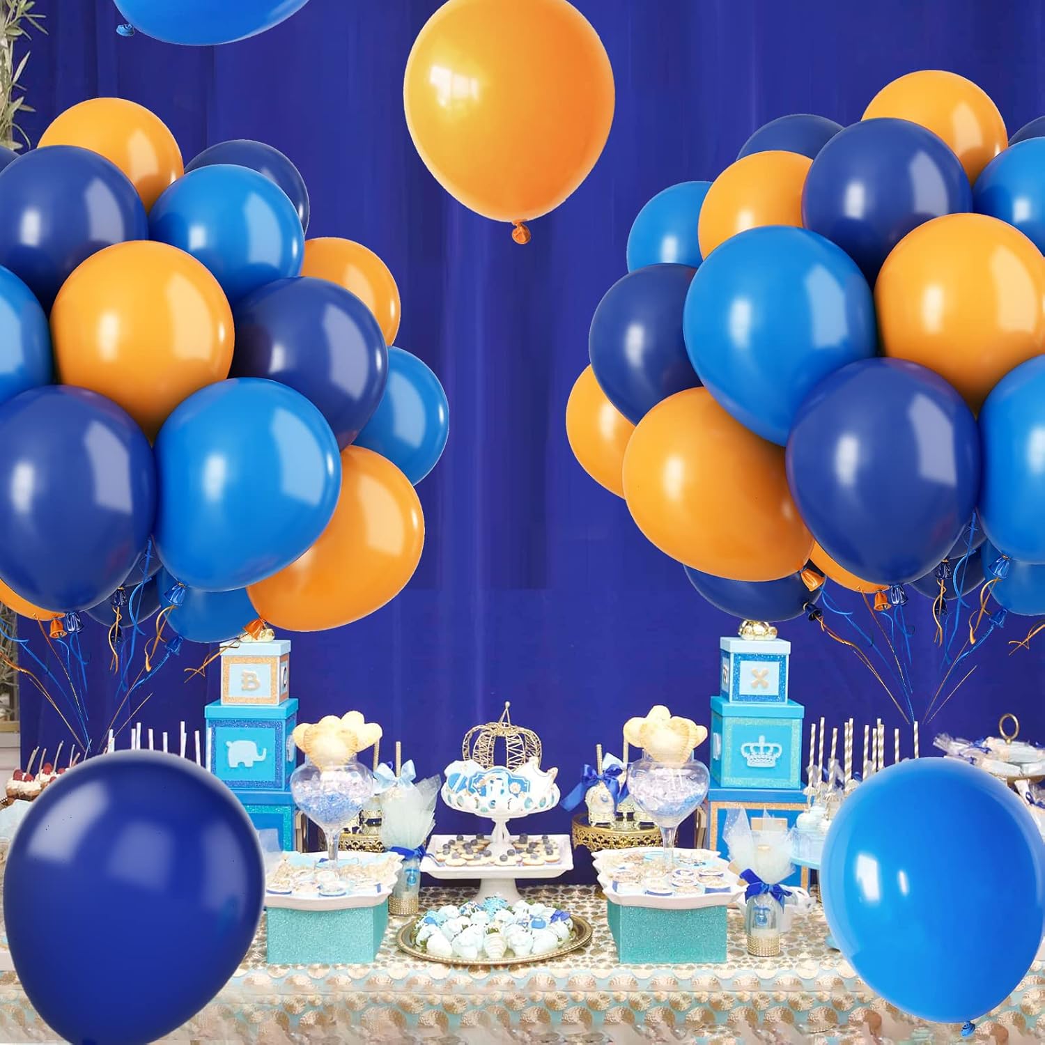 - Mixed Balloons Set: The 12 inch blue and orange balloons set includes 10pcs matte dark blue balloons, 10pcs orange balloons, 10pcs navy blue balloons, 2 roll of ribbon. 32pcs in total. Vibrant colors give you a impressive party and make some unforgettable fond memories.