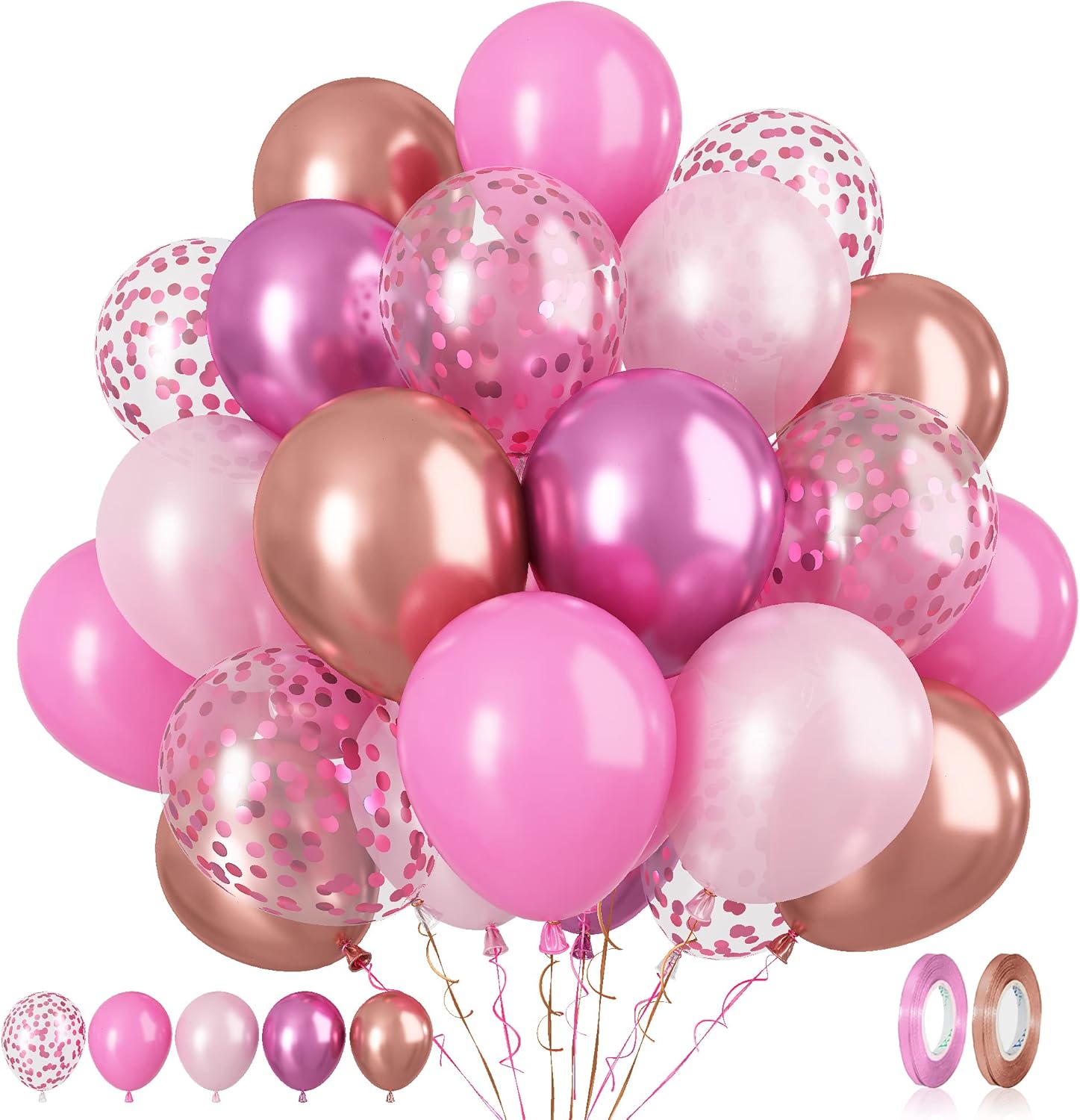 - Includes 60pcs 12 inch pink confetti balloons in metallic red, matte pink, rose gold, pastel pink and pink confetti colors