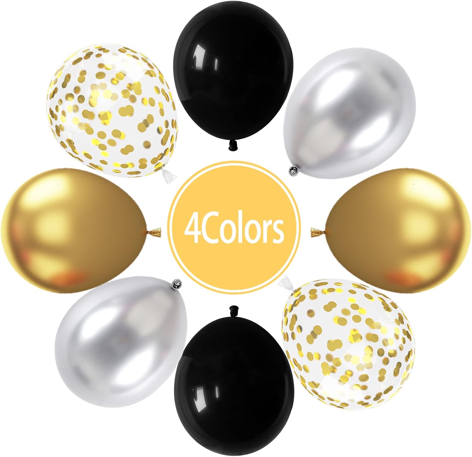 - Mixed Balloons Set: The 12 inch black and gold confetti balloons set includes 15pcs black balloons, 15pcs metallic silver balloons, 20pcs metallic gold balloons, 10pcs gold confetti balloons, 2 roll of ribbon. 62pcs in total. A variety of latex balloons are suitable for your art theme decoration.