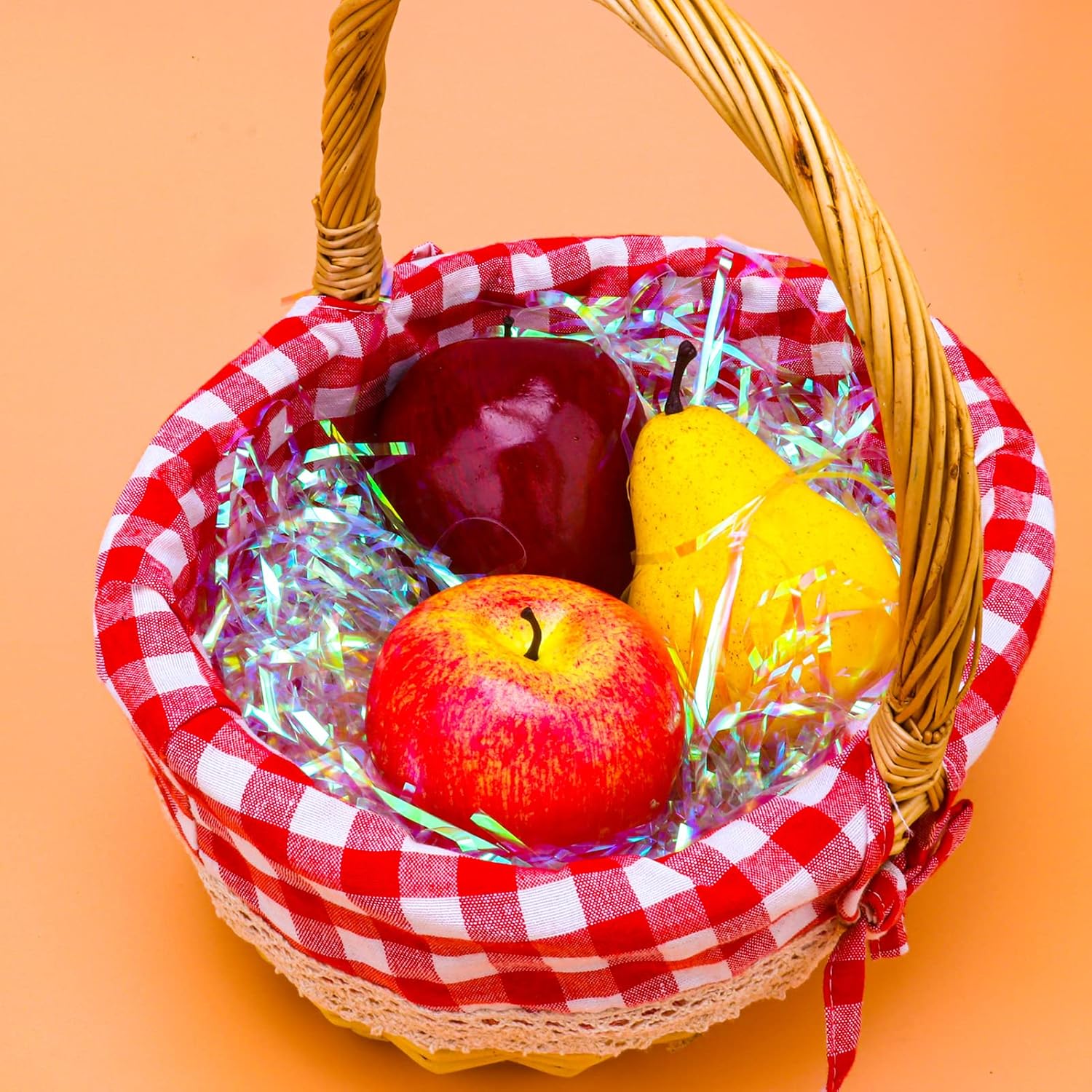 - 1. 💗Made of PP Plastic material: 150 Grams crinkle cut paper shred filler in Iridescent. Best gift box filler/ basket filler for choice. Very soft and lightweight for using as gift basket filler and protect your gifts from damage.