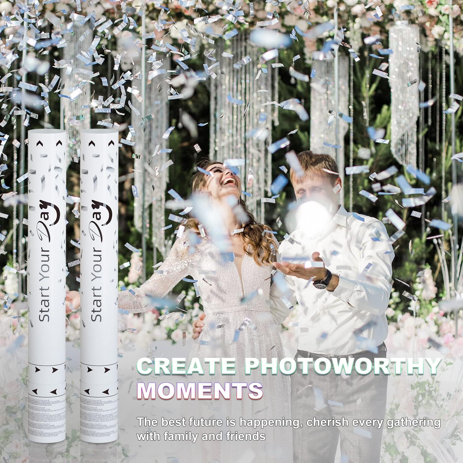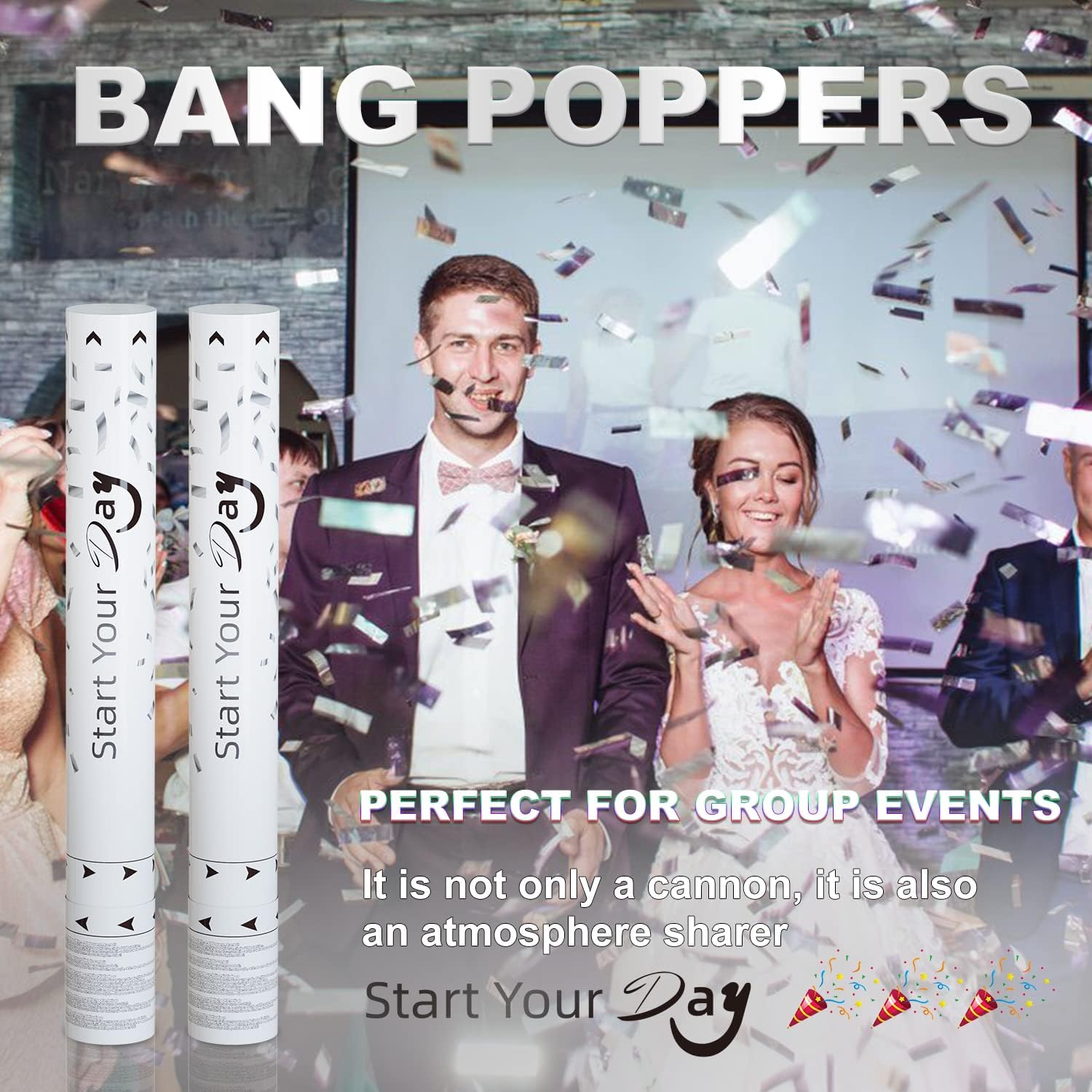 confetti Cannons, 15 Inch+Longer Confetti Shooters Party Poppers, WORKKEEP Silver Confetti Popper Air Powered for Birthday Wedding Celebration Photo Shoot New Year's Eve confetti Gun