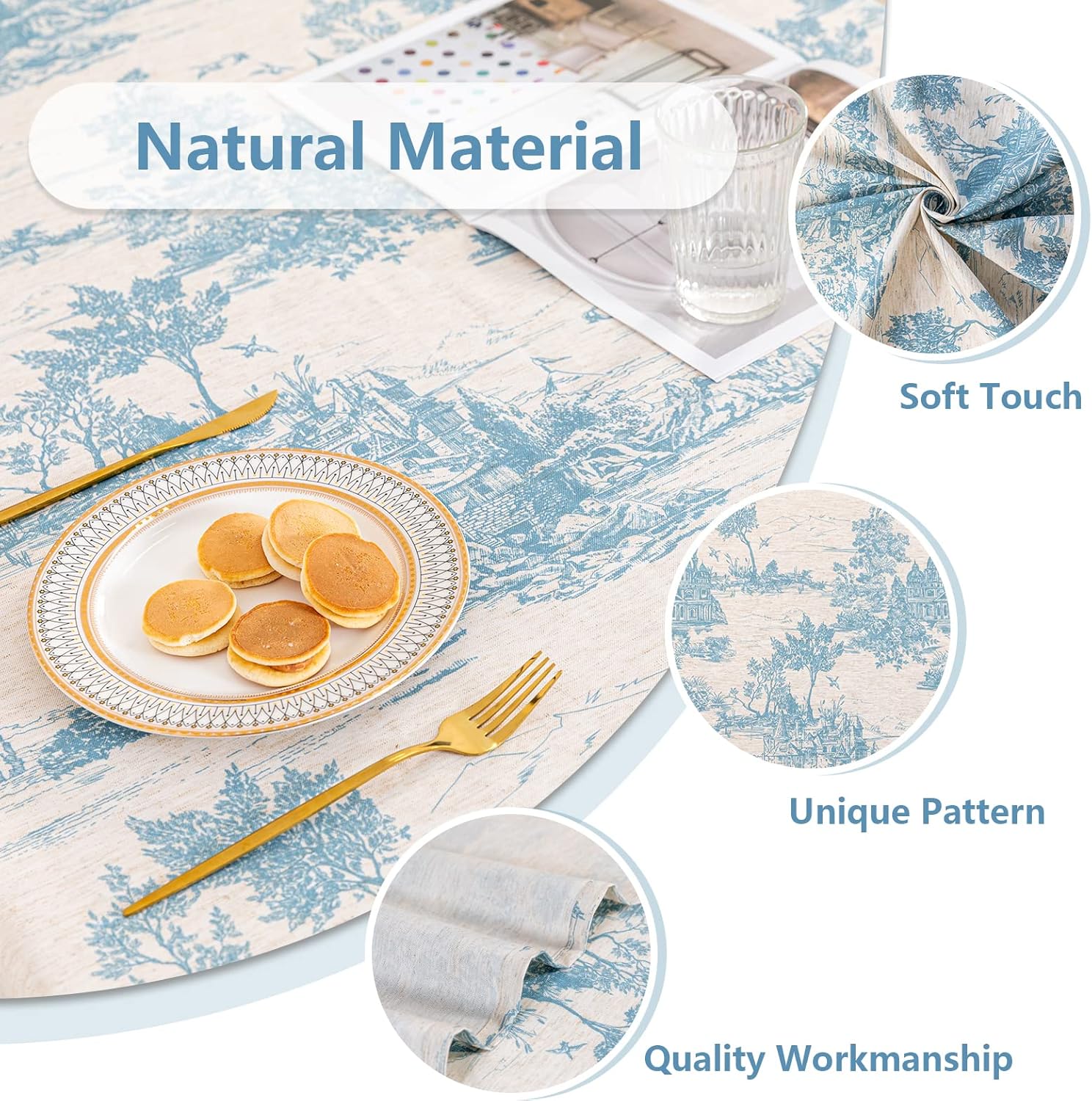 MYSKY HOME Linen Vintage Rectangle Tablecloth 60x120 Inches, Blue Castle Print Table Cloth for Dining Table I Tabletop I Parties/Outdoor I Spring/Summer Waterproof Fabric Farmhouse Tablecloth
