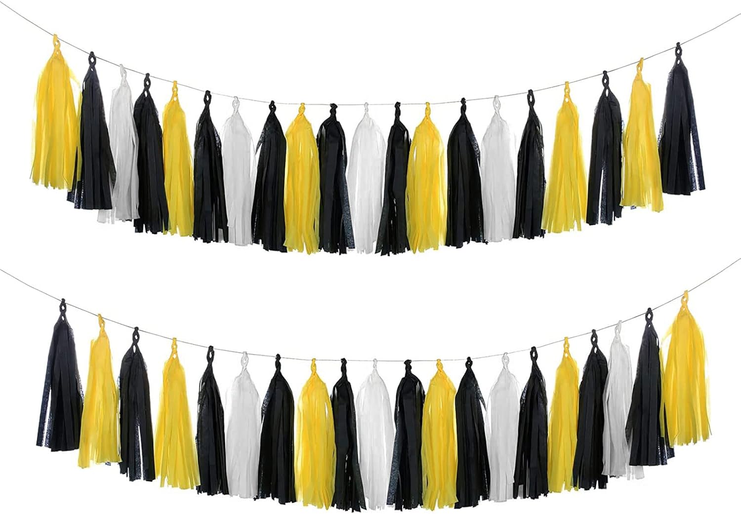 Yellow White and Black Tassel Garland Banner Paper Tassels for Party Decorations,Pack of 15