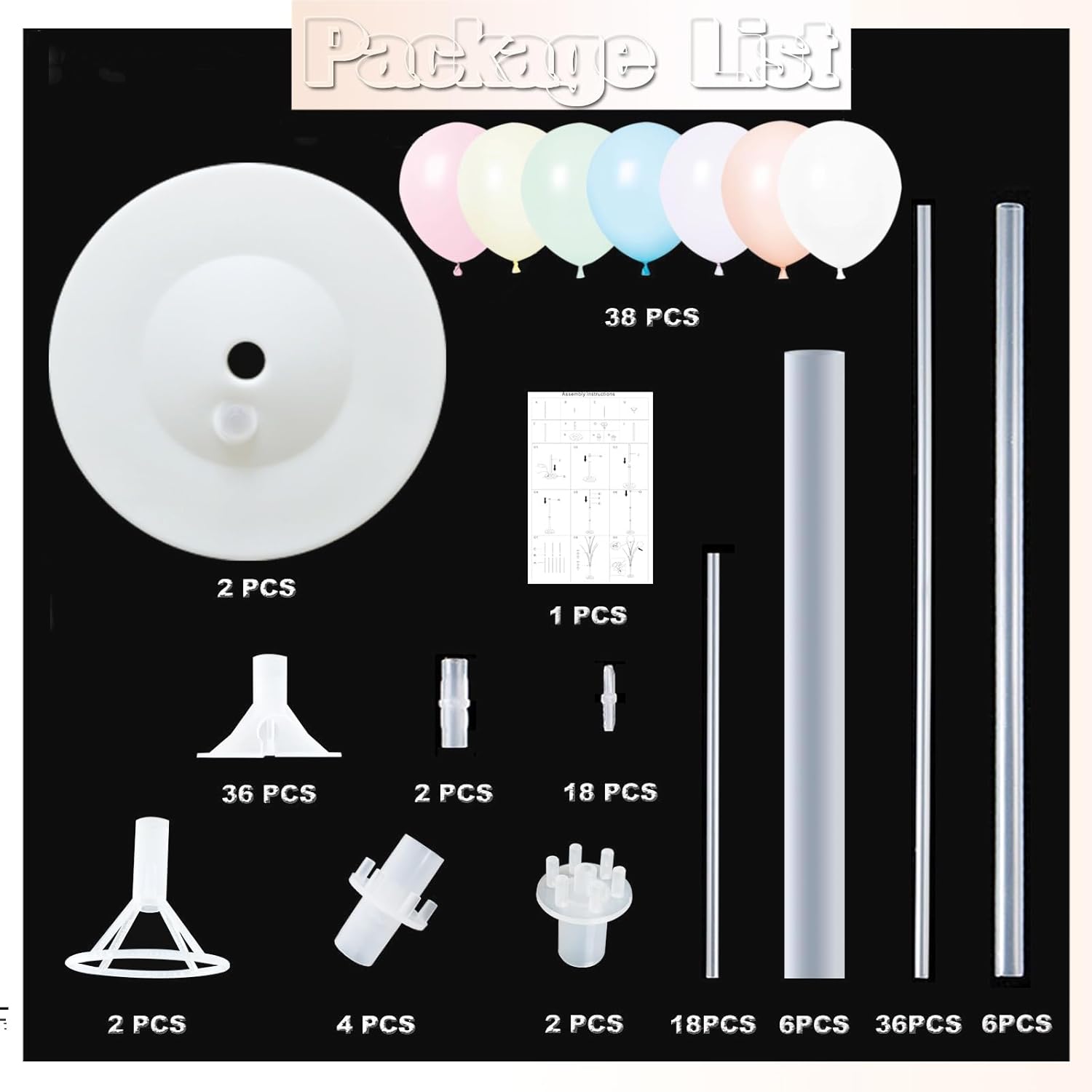 - COMPLETE SET FOR TWO BALLOON STAND - Balloon stand kit includes everything you need to build 2 set balloon stand,each kit includes 38 quality balloons (8 colors),each stand is 74" in height when fully assembled and can be customized as needed.