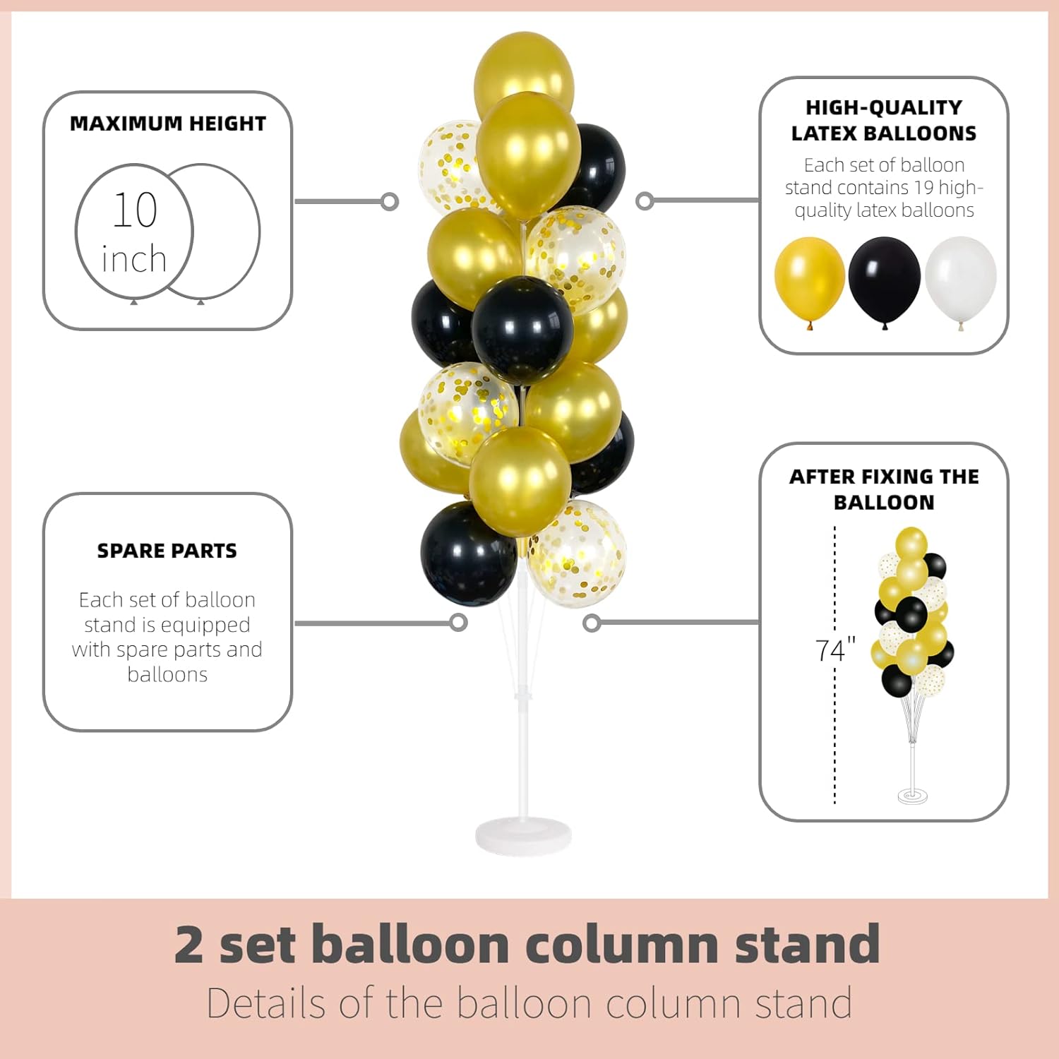 Balloon Column Kit Set of 2 With Confetti Balloons Included - with Base, and Pole,Balloon Tower Backdrop Decoration for Wedding, Baby Shower, Birthday Party, or Bachelorette Parties (Black Gold)