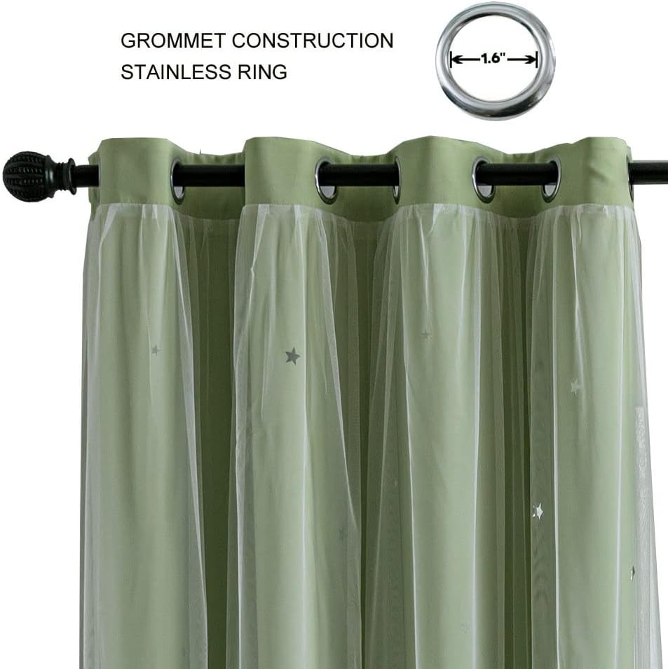 FANLI 2 Panels Star Blackout Curtains for Kid Girls Bedroom Living Room Darking Stripe Double Layer Star Cut Out Wall Home Decor Gradient Grommet Window Curtains (Green 95L)