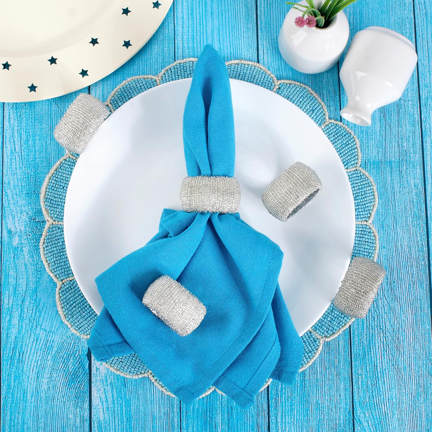 Decorative Beaded Napkin Rings Set of 12 - Rhinestone Serviette Holder for Table Décor, Christmas, Thanksgiving, Weddings, Parties, Artisan Festive Luxury Dining Napkin Holders (Silver) - CLEENTABLE