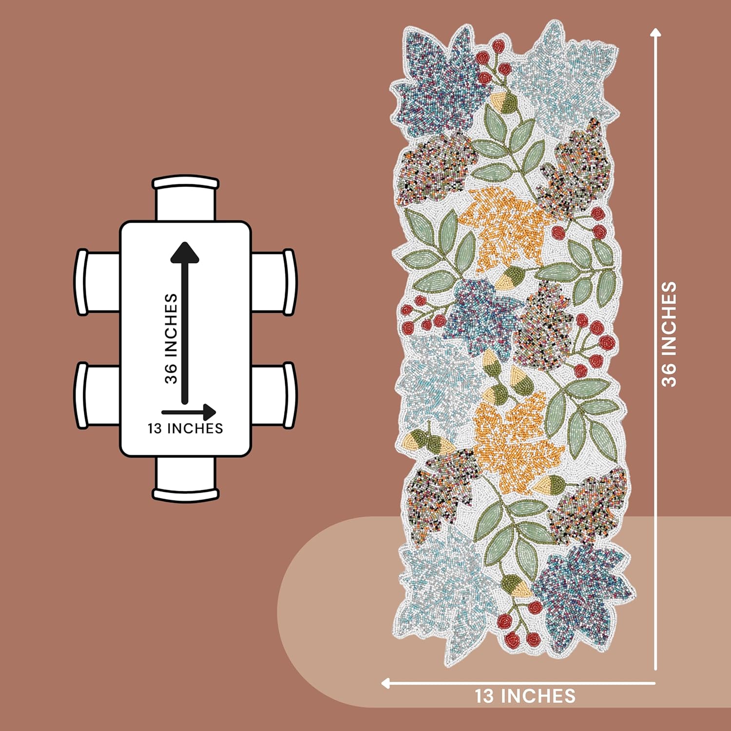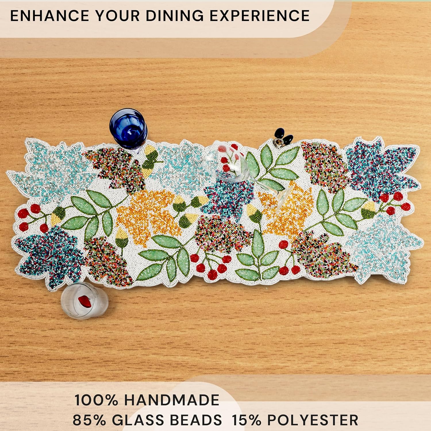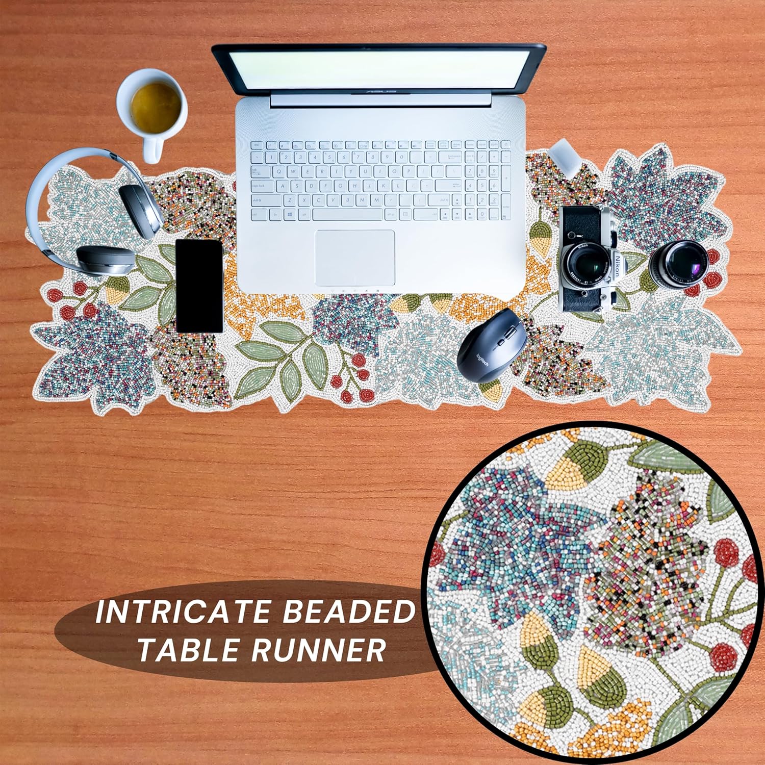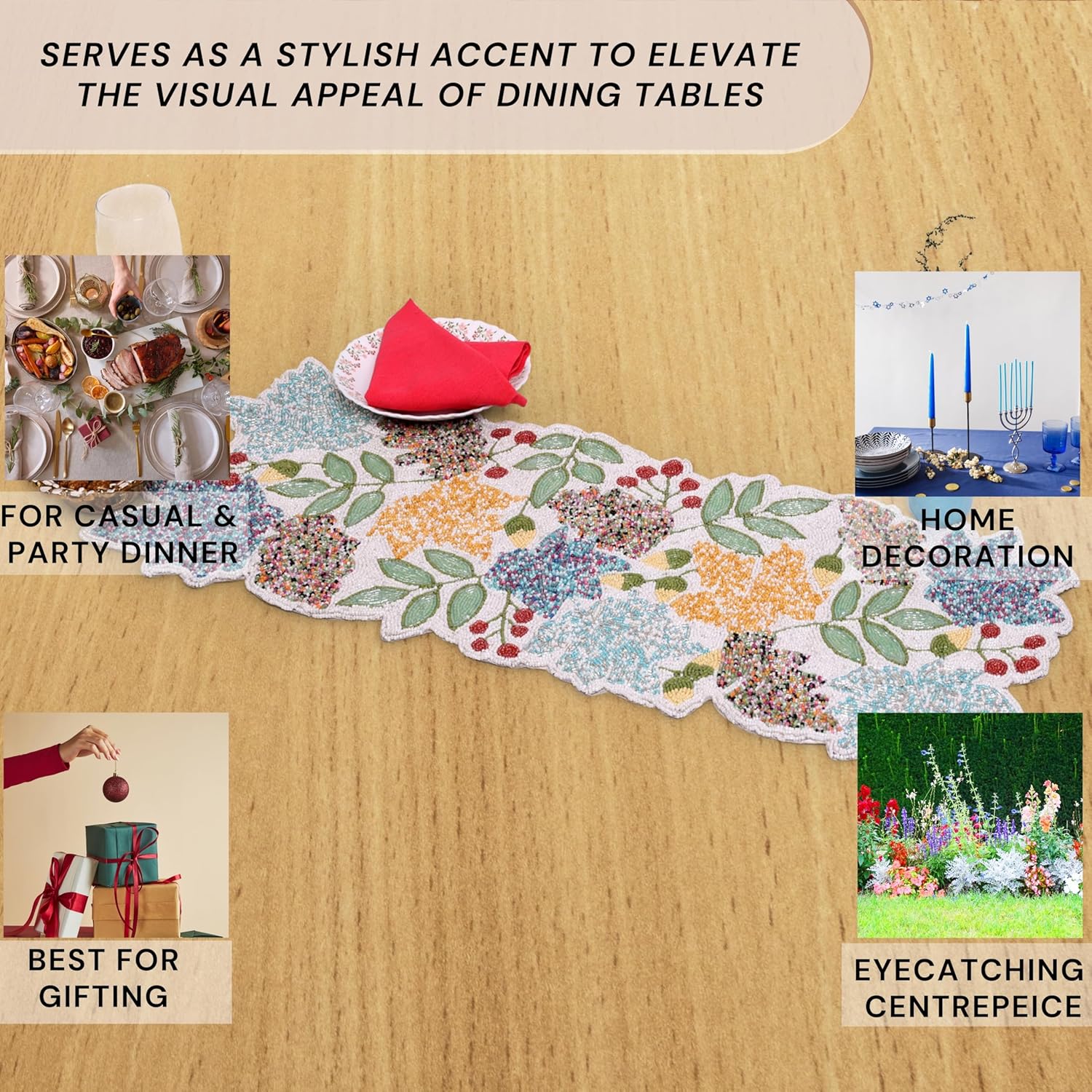 Boho Beaded Table Runner - 36" Handcrafted Glass Beads Floral Design with Durable Non-Slip Polyester Backing for Dining, Coffee Table & Special Occasions (Multi) - CLEENTABLE