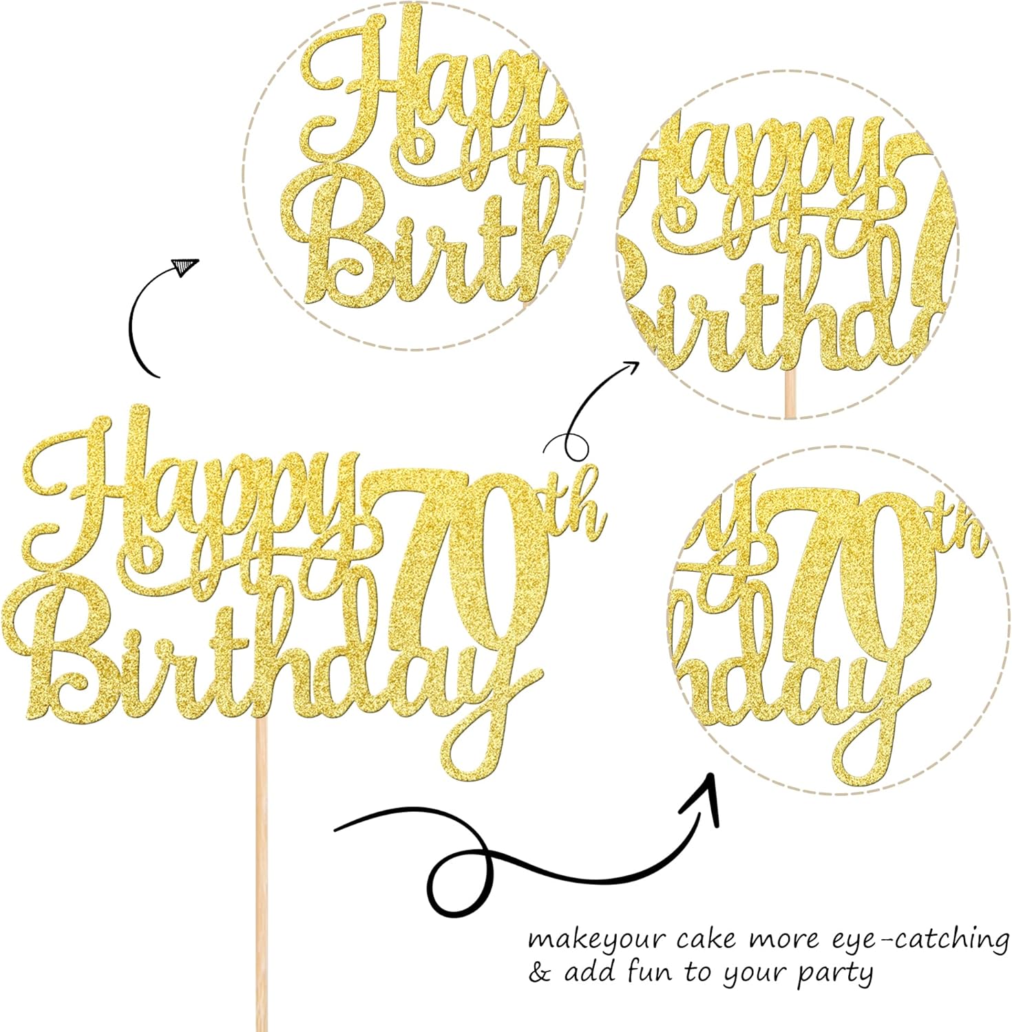 - Wide Usages ! The cake topper is perfect for happy 70th birthday theme party, cheers to 70 years birthday theme party cake decorations, they can make your cake more attractive and bring the fun to your party.You can also apply them for ice cream, fruits, cookies and other desserts.