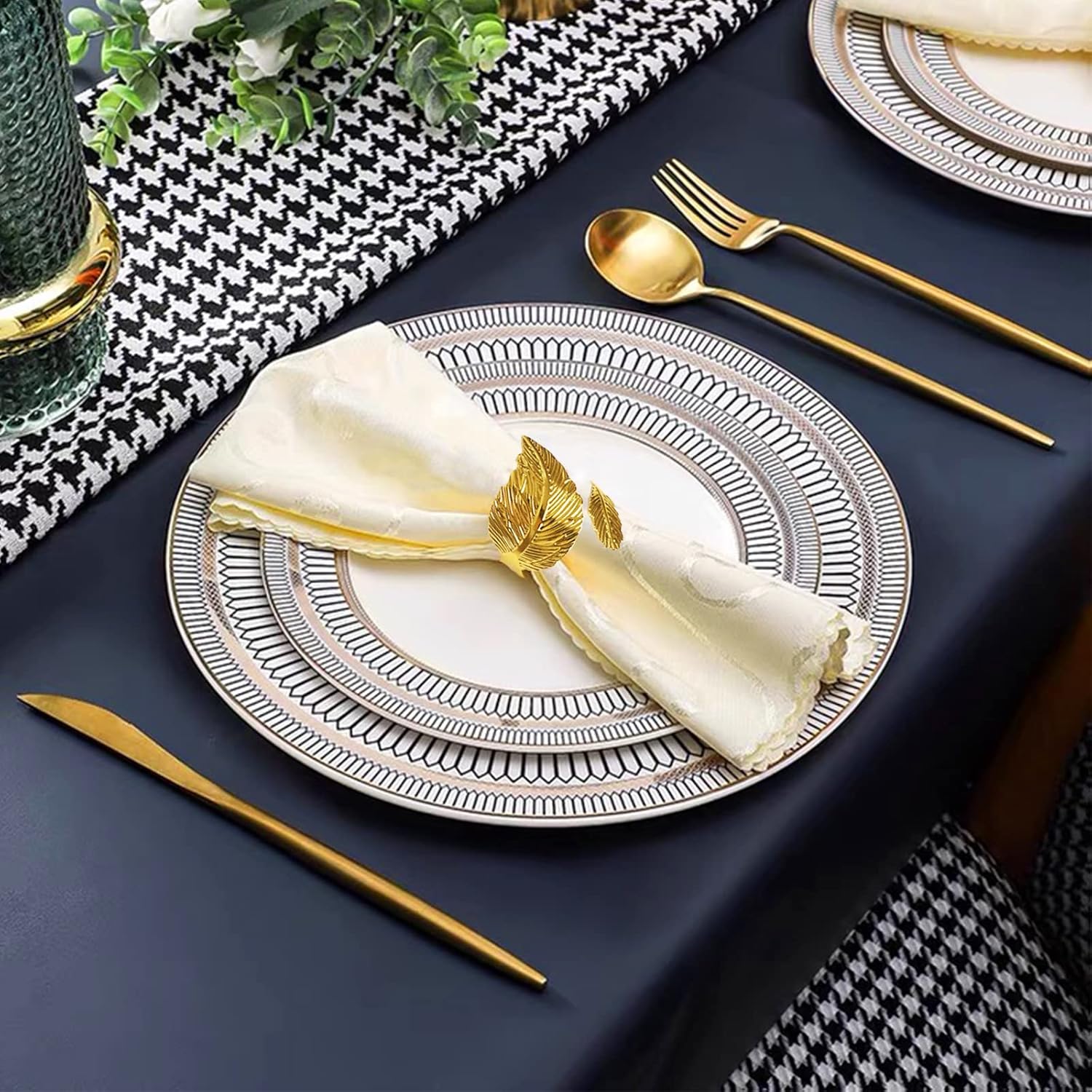 - Elegant Looking: Gold leaf shape, simple and beautiful. Nice finish to your dinner table decor, classy design perfectly match any of the napkins, table settings and accessories.