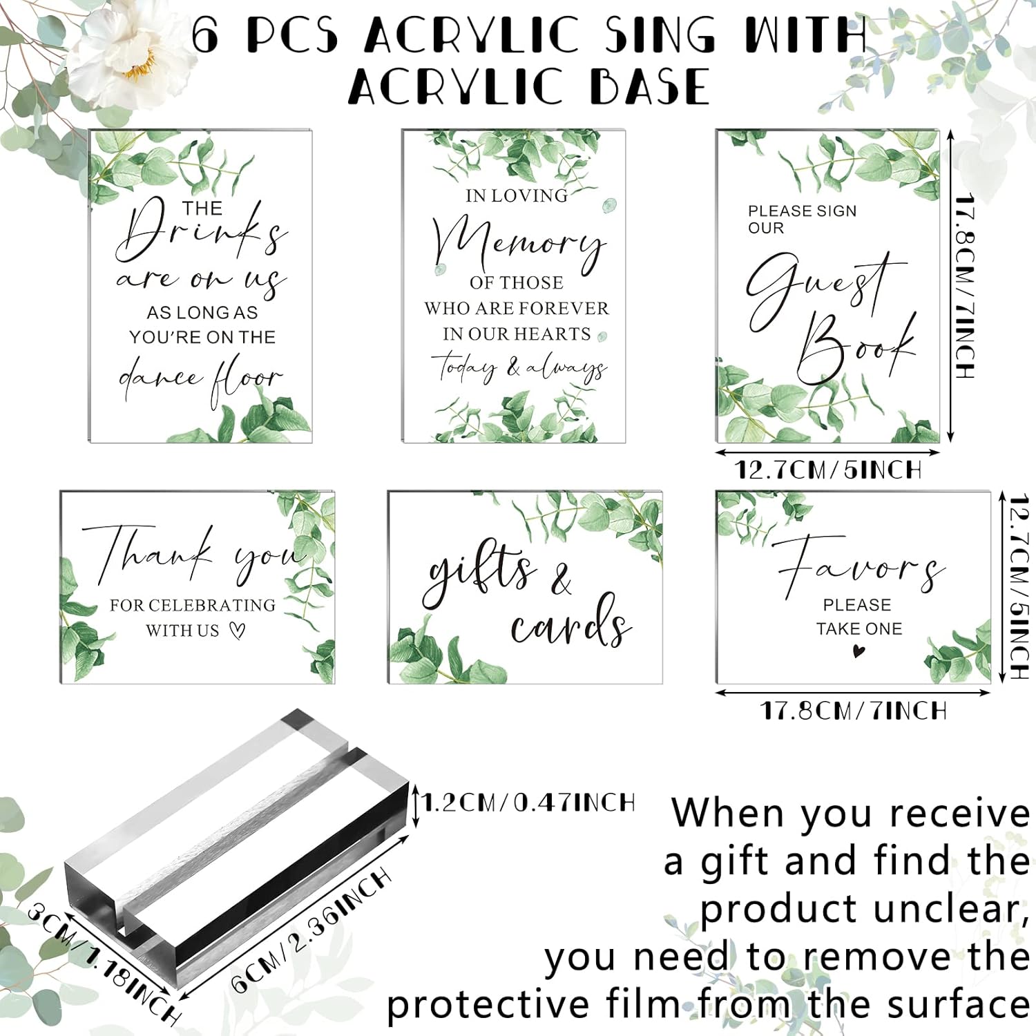 Weysat 6 Pcs Clear Acrylic Wedding Signs for Reception and Ceremony 5'' x 7'' Wedding Signage with Stand in Loving Memory Table Decorations Cards and Gifts Guestbook Reserved Table Sign(Elegant Style)