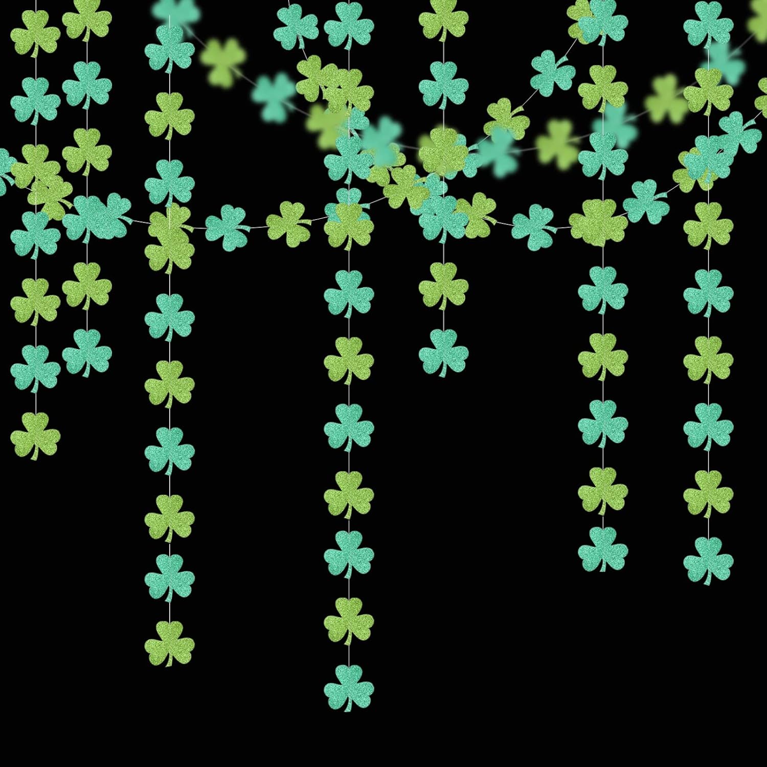 - 【Material】The material is eco-friendly double side gittler dark green and light green which don't drop glitter.You can cut to any length you want if you need shorter length.The shamrock are cut very neatly.