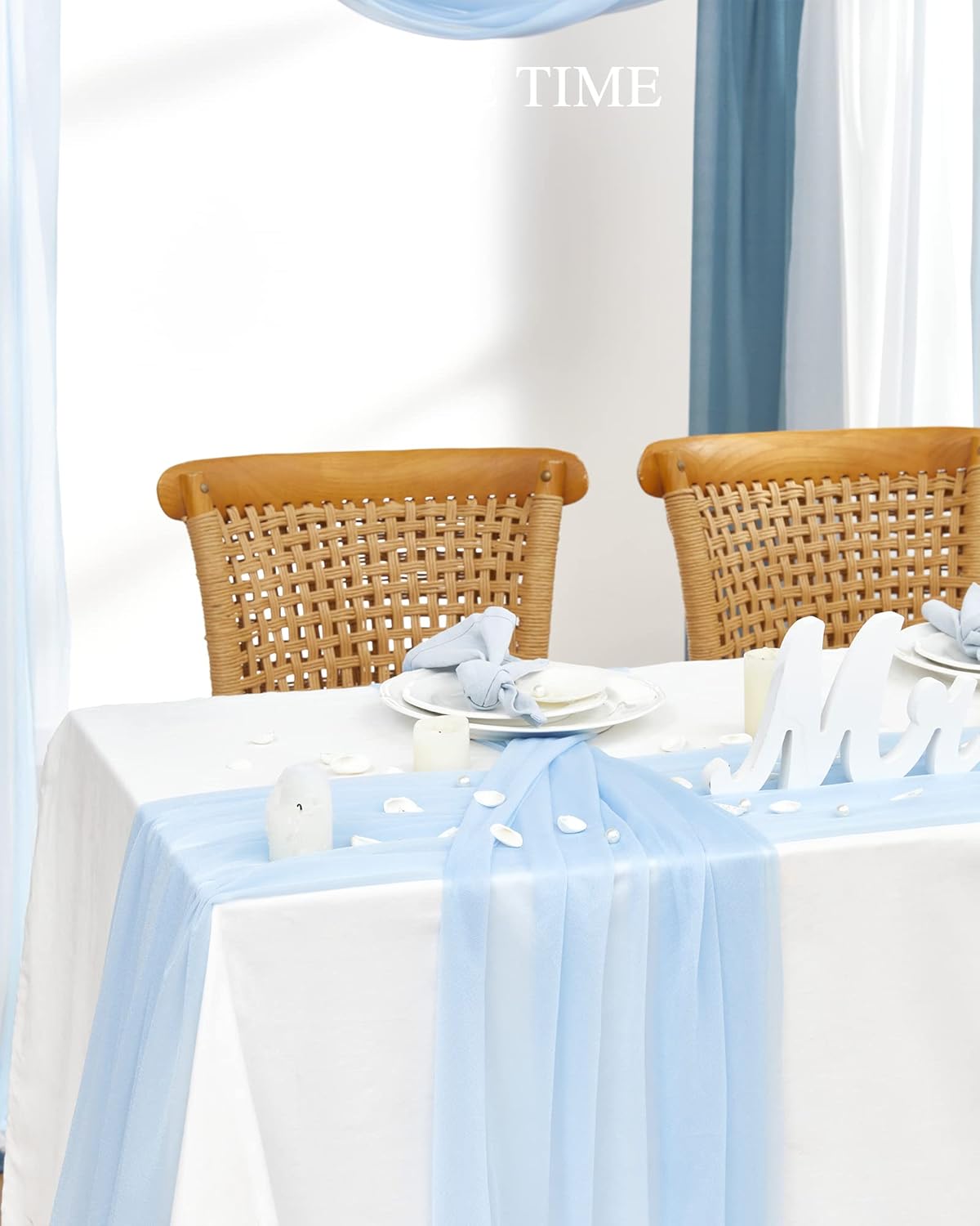 - 【Package Includes】Our wedding arch draping fabric set features three panels of gradient blue chiffon, each measuring 30" wide and 20ft long. The arch shown in the picture stands 6.5 ft high and 5.9 ft wide, making it perfect for creating stunning wedding decorations and capturing beautiful photographs.
