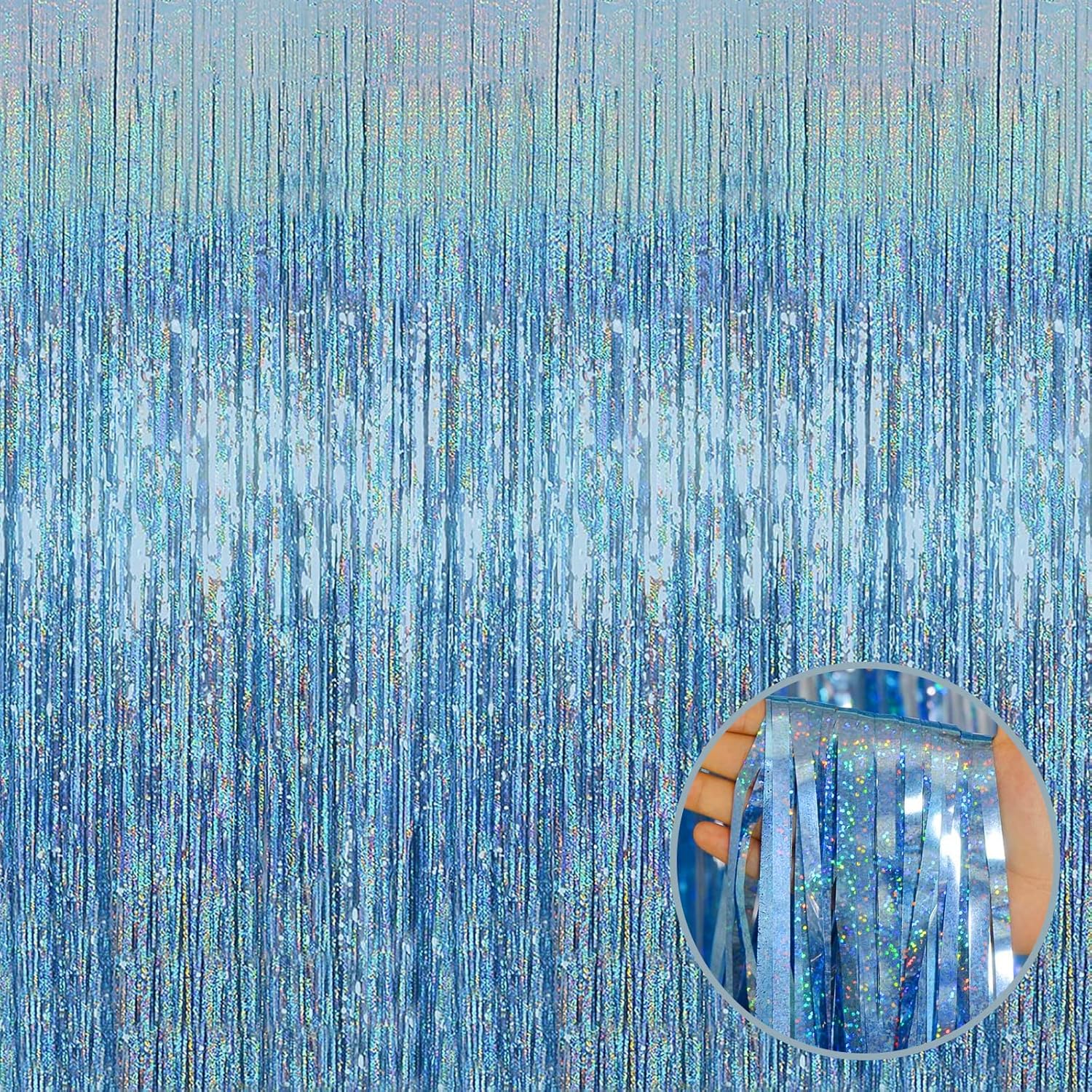 4p Pack Sky Blue Tinsel Foil Fringe Curtain Backdrop, 3.28Ft x 8.2Ft Metallic Streamers for Photo Booth Props Wedding Bridal Shower Bachelorette Birthday Christmas Party Decoration