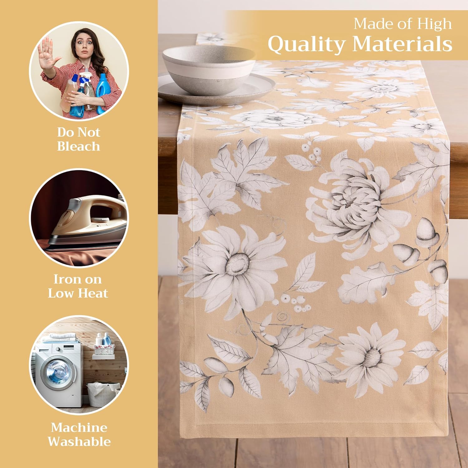 - Enhance Your Home: Crafted from 100% cotton, this reusable table runner adds a warm, seasonal touch to your dining decor. Ideal for Thanksgiving, Halloween decorations, or Christmas decorations—pair it with matching linens for an elegant fall or holiday gift