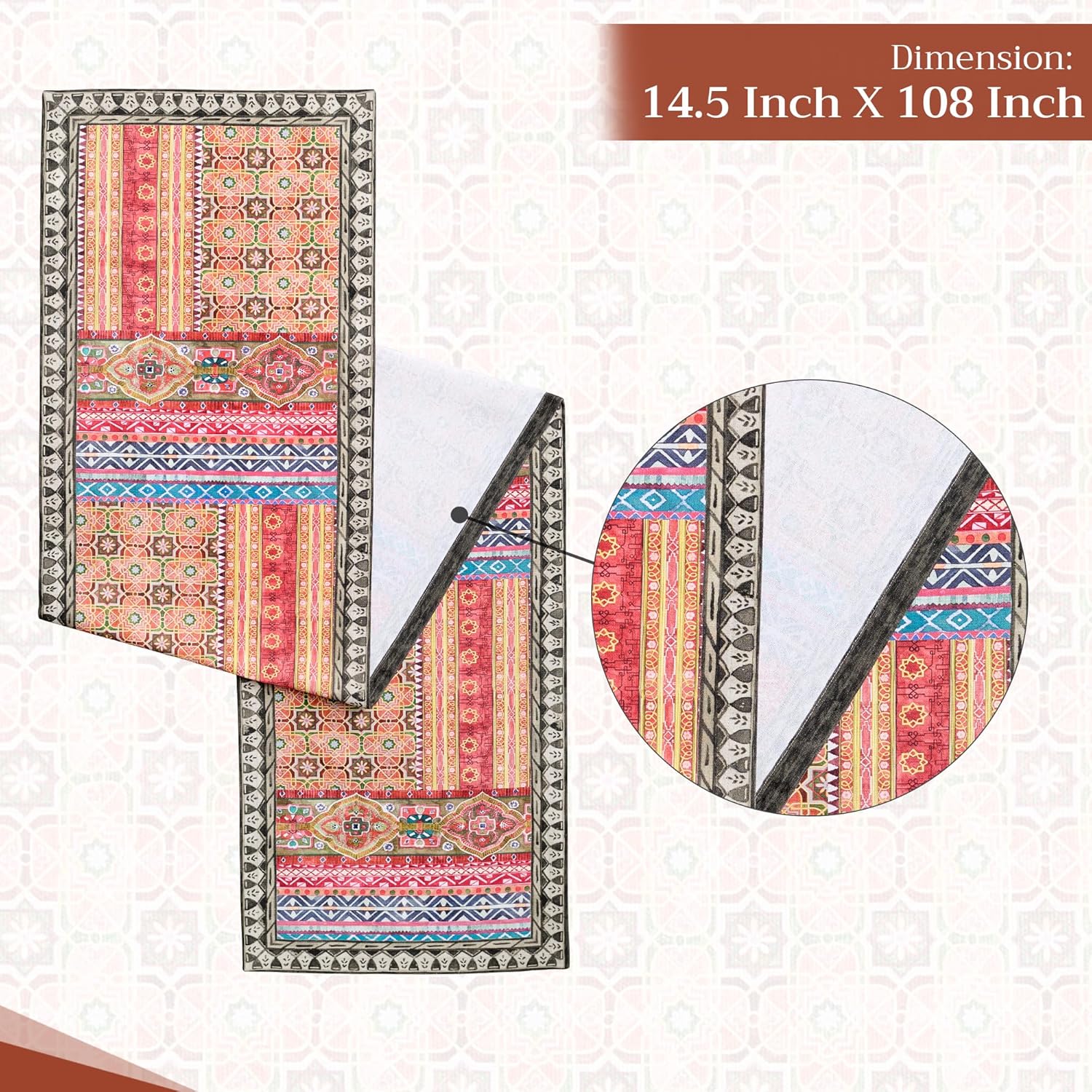 - Package Includes: 1 table runner measuring 14.5" x 108", made from 100% cotton. Ideal for banquet tables, dining tables, or adding a spring, Thanksgiving, or Christmas touch to your party decor. This 108-inch table runner brings unique charm to both casual and festive settings