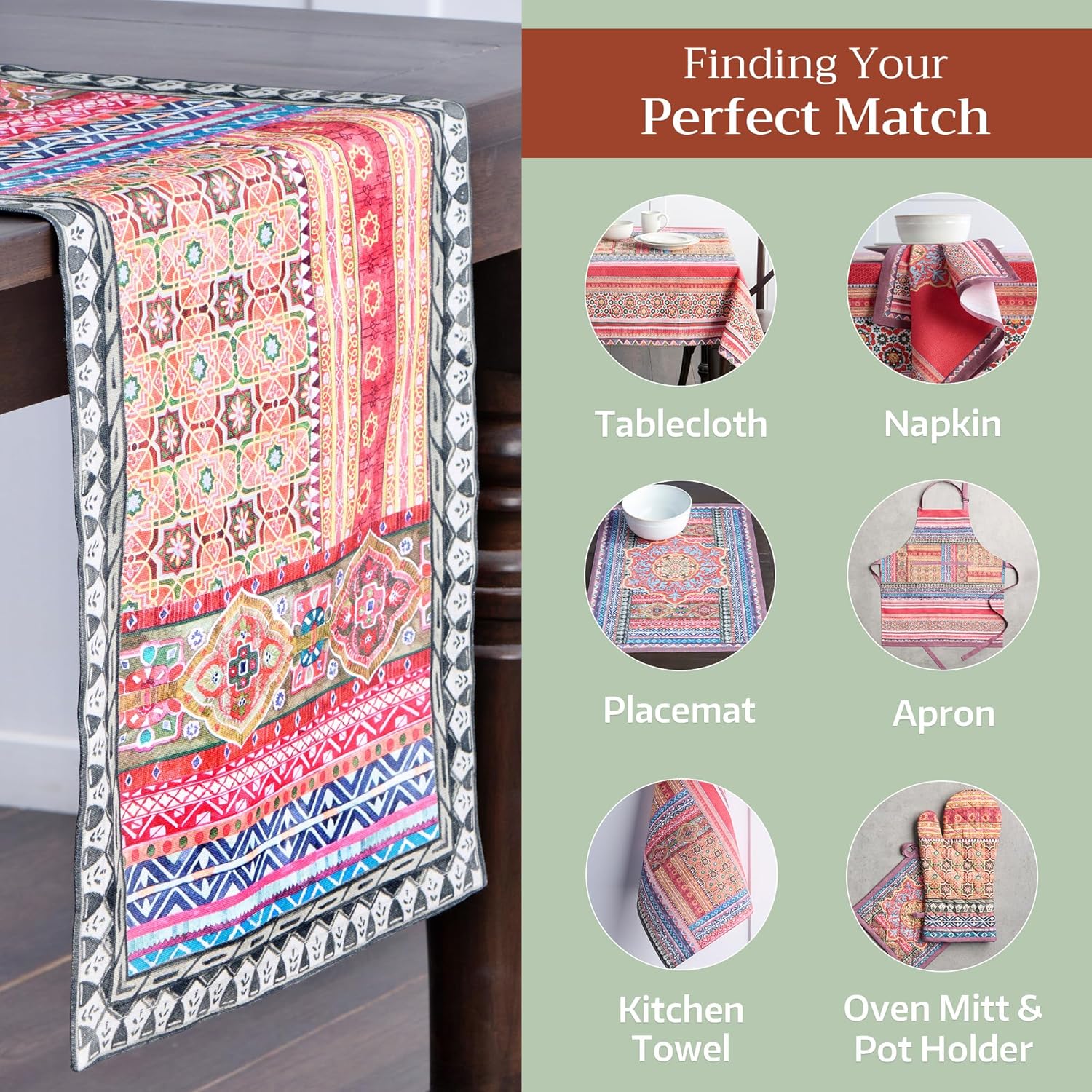 Maison d' Hermine Table Runner 100% Cotton Single Layer Table Runners 108 inches Long for Thanksgiving Christmas Decorations Home Kitchen Dining Party Wedding (Ispahan, 14.5" x 108")