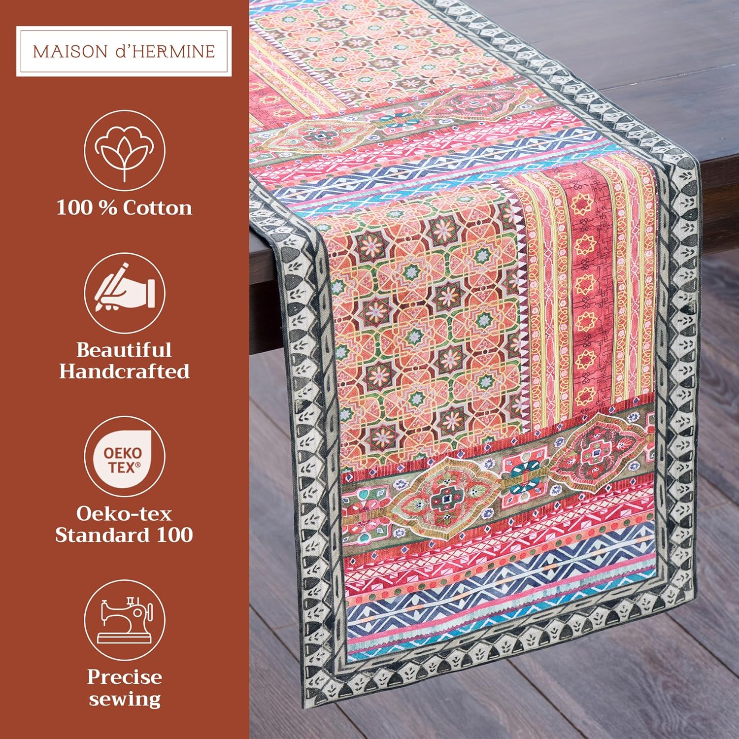 Maison d' Hermine Table Runner 100% Cotton Single Layer Table Runners 72 inches Long for Thanksgiving Christmas Decorations Home Kitchen Dining Party Wedding (Ispahan, 14.5" x 72")