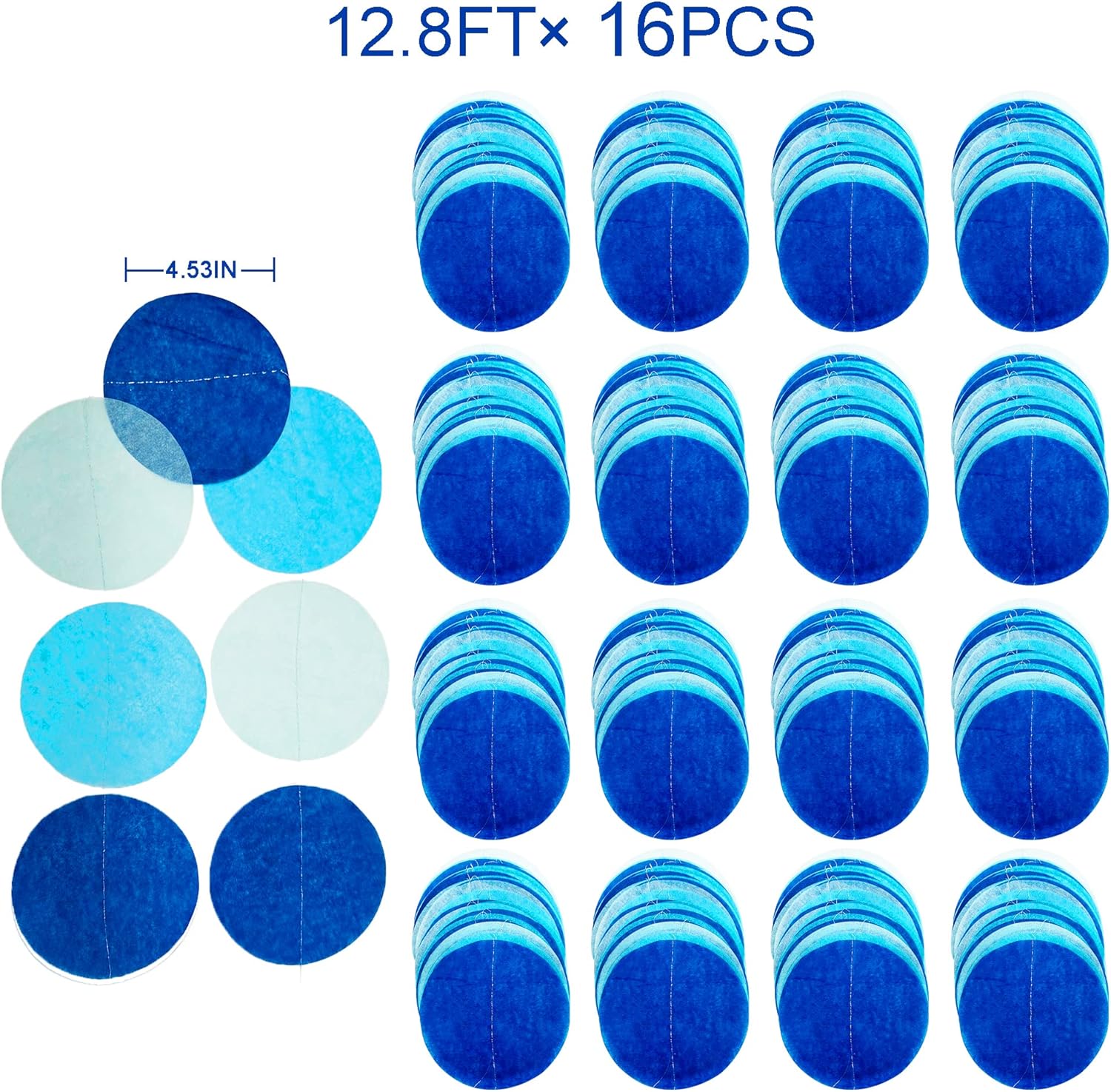 - 🔵PACKAGE CONTAINS- 16 packs of royal blue and white circle dot party garland banner,each string is 12.8 feet/3.9 meters with 30 pcs polka dots, Total is 62.4 meters/205 feet.