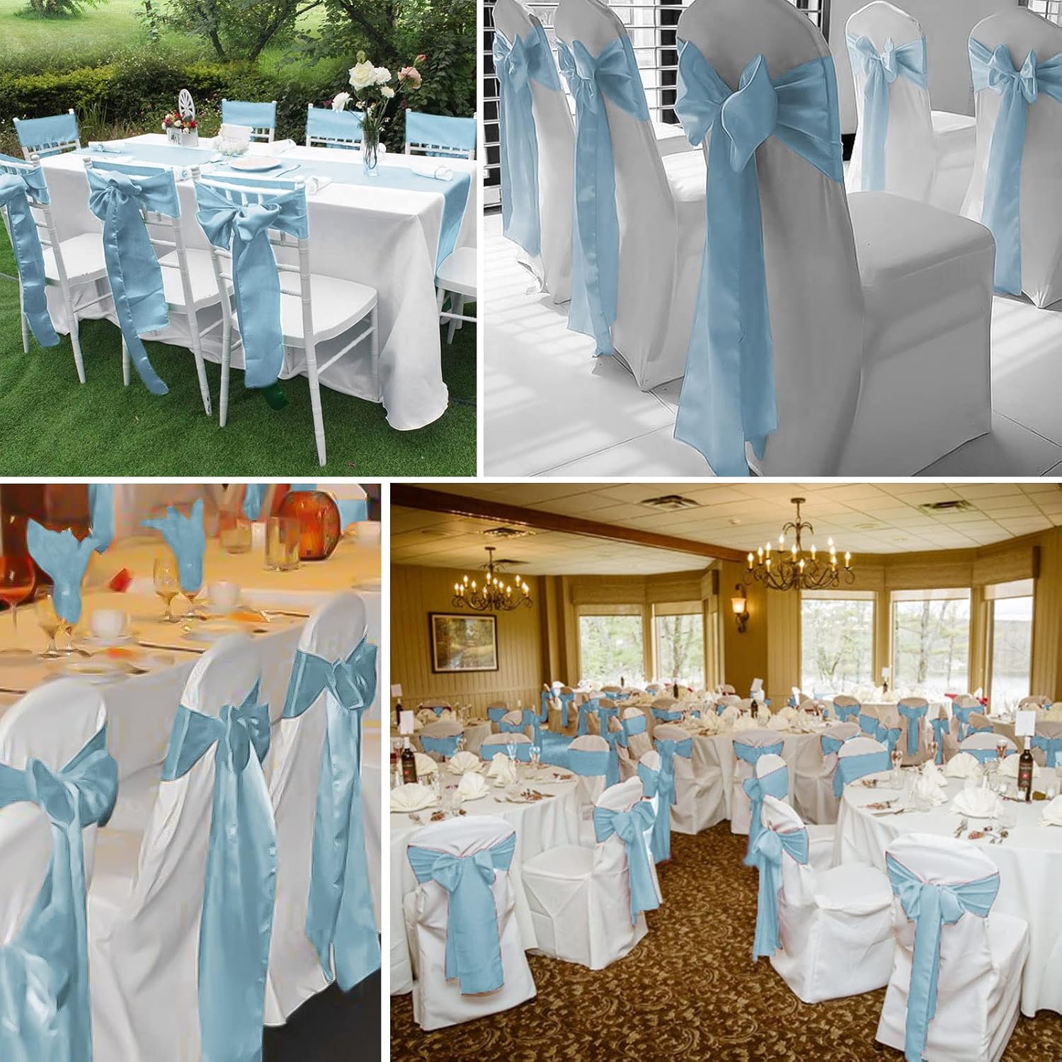 fani 60 PCS Baby Blue Satin Chair Sashes Bows Universal Chair Cover for Wedding Reception Restaurant Event Decoration Banquet,Party,Hotel Event Decorations (7 x 108 inch)